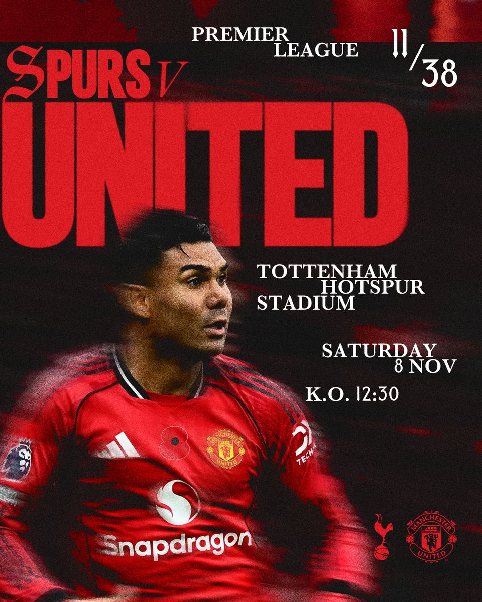 曼联、热刺发布赛事预告海报:卡塞米罗、哈维-西蒙斯出镜