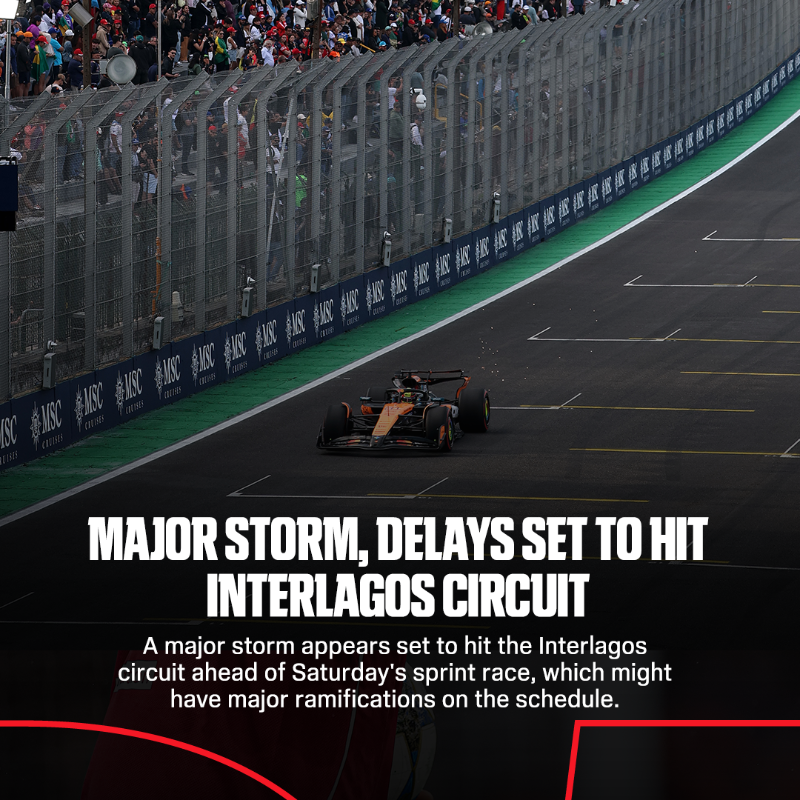 ESPNF1官方推特账号报道。一场强风暴似乎将在周六冲刺赛前袭击英特拉格斯F1赛道☔