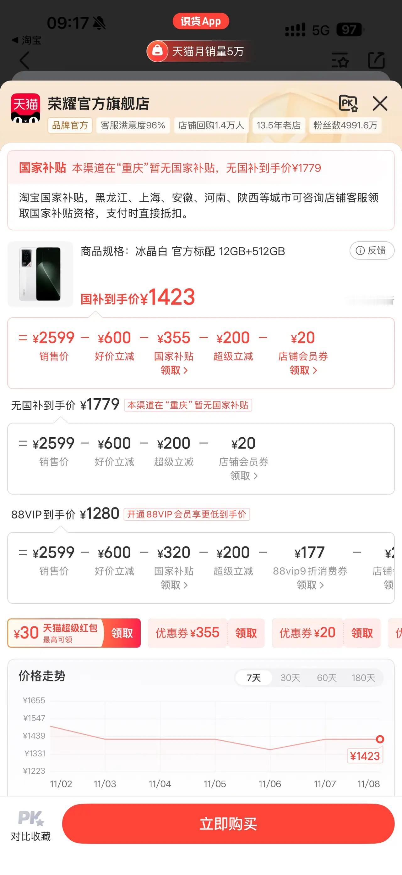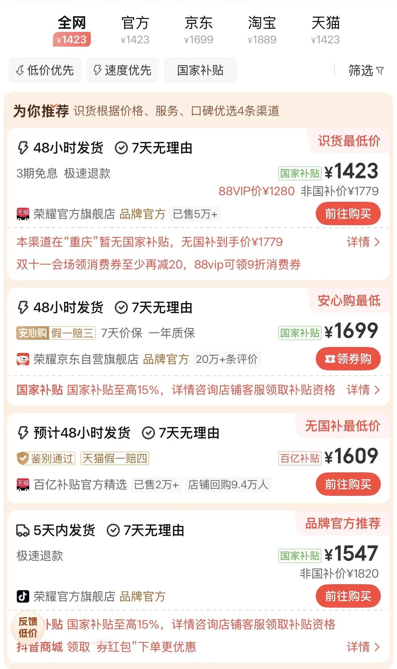 📣 耀子这是要卷死友商啊!性价比天花板真的被它捅穿了! 🔥荣耀GT 12+512G版 💥双11狂补!1423元直接带走! 这价格配上这配置,我只能说:还有谁?! · 骁龙8Gen3旗舰芯,性能拉满 · 电竞级游戏体验,流畅不卡顿 · 影像表现也超出预期 · 唯一小遗憾:5300mAh电池稍小,但日常够用! 要啥自行车?一千四拿下512G+旗舰芯片,还要啥自行车!🚴♂️ 双11这波,真·闭眼入不亏!