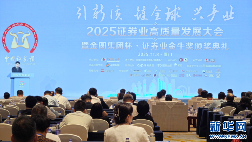 新华网福州11月8日电(刘默涵)11月8日,2025证券业高质量发展大会在厦门举行。大会立足国内产业结构转型升级与企业更大力度“走出去”的时代背景,共同探讨证券行业如何积极发挥金融优势,助力发展新质生产力。