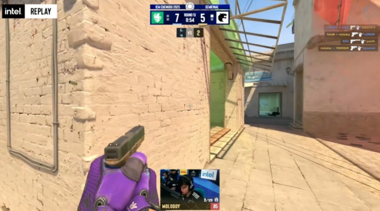第10局猎鹰纯E,Monesy中路沙鹰一发手撕molodoy大狙,yuurih击杀A二楼Niko,猎鹰带包冲B二楼,教父白车双杀,龙哥没办法下包被杀,猎鹰5-5黑豹。