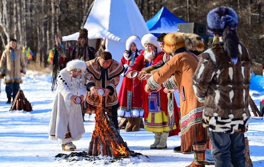 11月7日,2025—2026内蒙古自治区冰雪旅游季在呼伦贝尔市根河市敖鲁古雅使鹿部落景区和中国冷极村启幕。这是演员在表演森林童话婚礼仪式。
