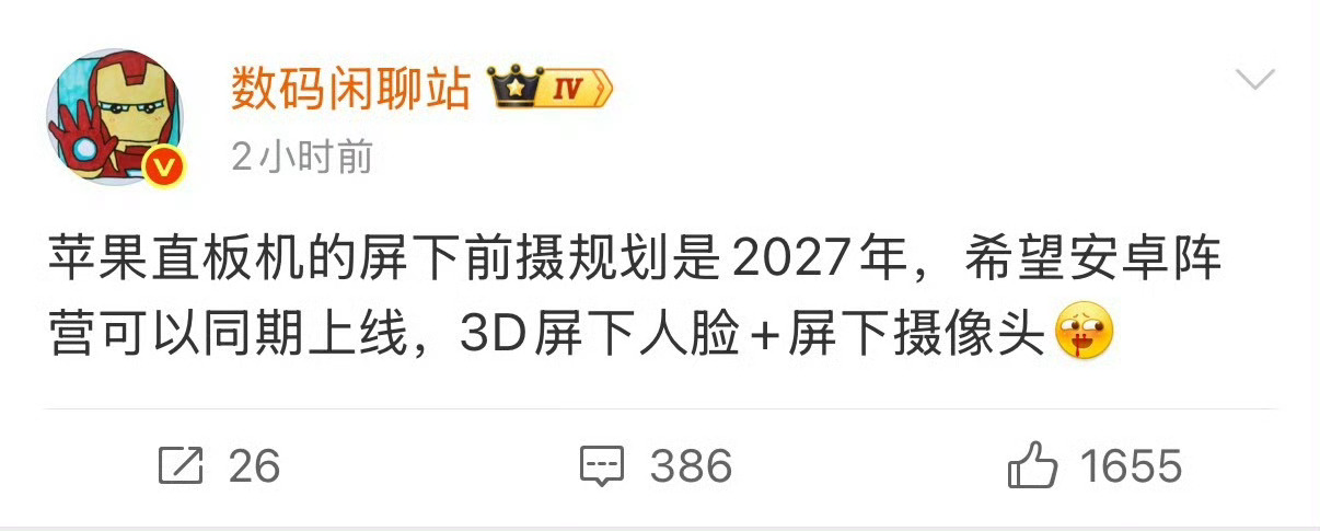 曝直板iPhone屏下摄像头2027年上线那明年不换18了,直接等27年屏下摄像头的iPhone19![允悲]