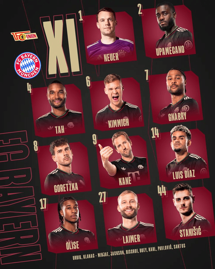 剑南春首发-柏林联合vs拜仁:凯恩领衔,格雷茨卡首发