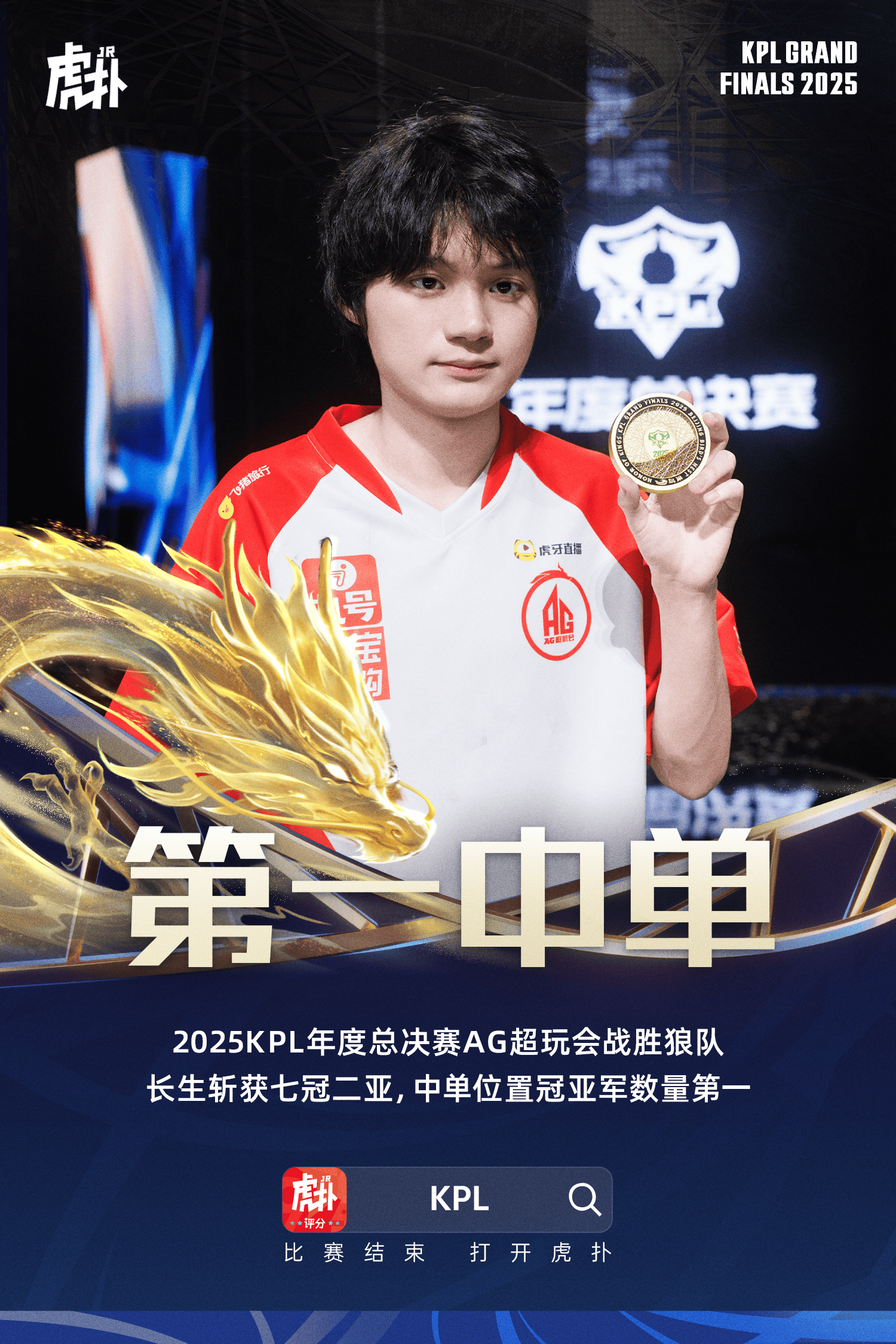 虎扑11月08日讯成都AG超玩会.长生斩获生涯第七冠,冠亚军数中单联赛第一。