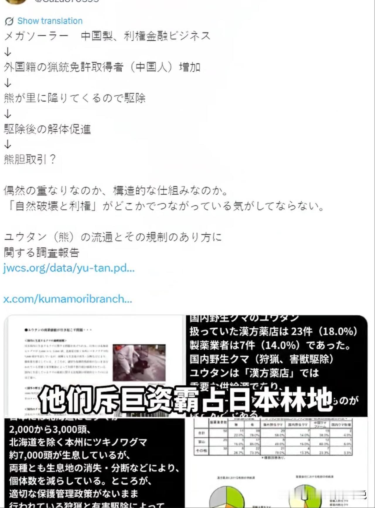 日本熊灾泛滥实在是太可怕了,今年已经发生了20000多件并造成了13人死亡。要知道熊是不可能无缘无故攻击人类的,除非有什么别的原因。日本网友可能也想到了这一点,所以开始找原因。其中比较荒谬的就是甩锅给中国,他们认为有以下两种可能。其一、他们认为附近大量安装了中国产的太阳能电池板,破坏了熊的生态和食物链,所以这事儿就得耐上咱们。那是不是日本轿车再美国撞死了人,这事儿也要怪日本!其二、他们认为有中国资本斥资占领日本林地,导致熊的栖息地遭到破坏。从而咱们就有理由派人去捕熊获得昂贵的熊胆。看到这两条甩锅理由我都忍不住想要笑,这脑回路也是没谁了!其实,我倒是觉得日本熊作乱可能是他们自己造成的,比如在研究什么见不得人的生物药品,亦或者是做什么恐怖的实验才导致熊失控。不要问我为什么,就是个人猜测,这帮人祖上干了什么坏事儿不用多说了吧!