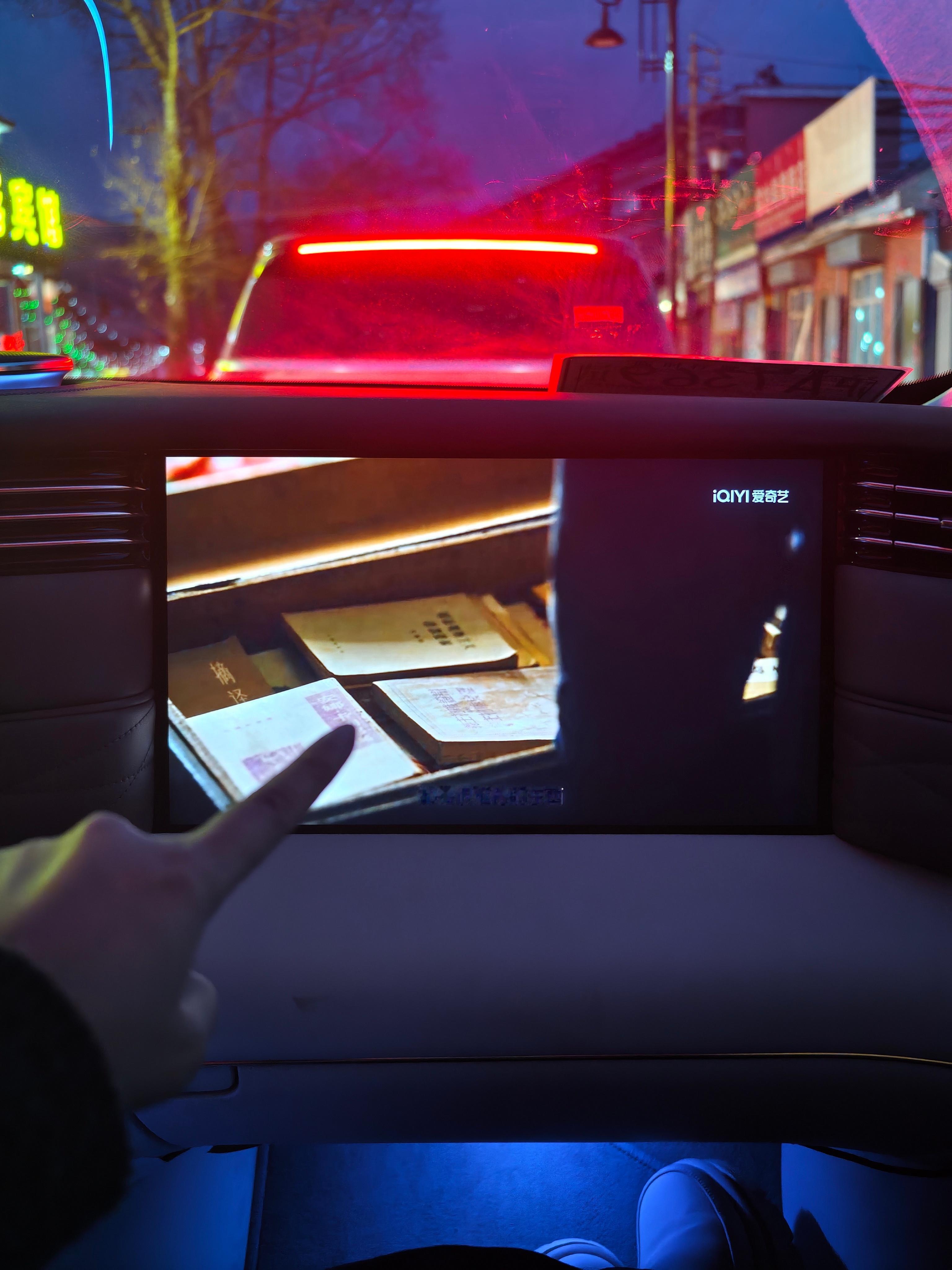 回到车里休息,我最喜欢副驾,这块副驾屏的位置和大小太合适了,还做了嵌入,就是一个公务舱的感觉。