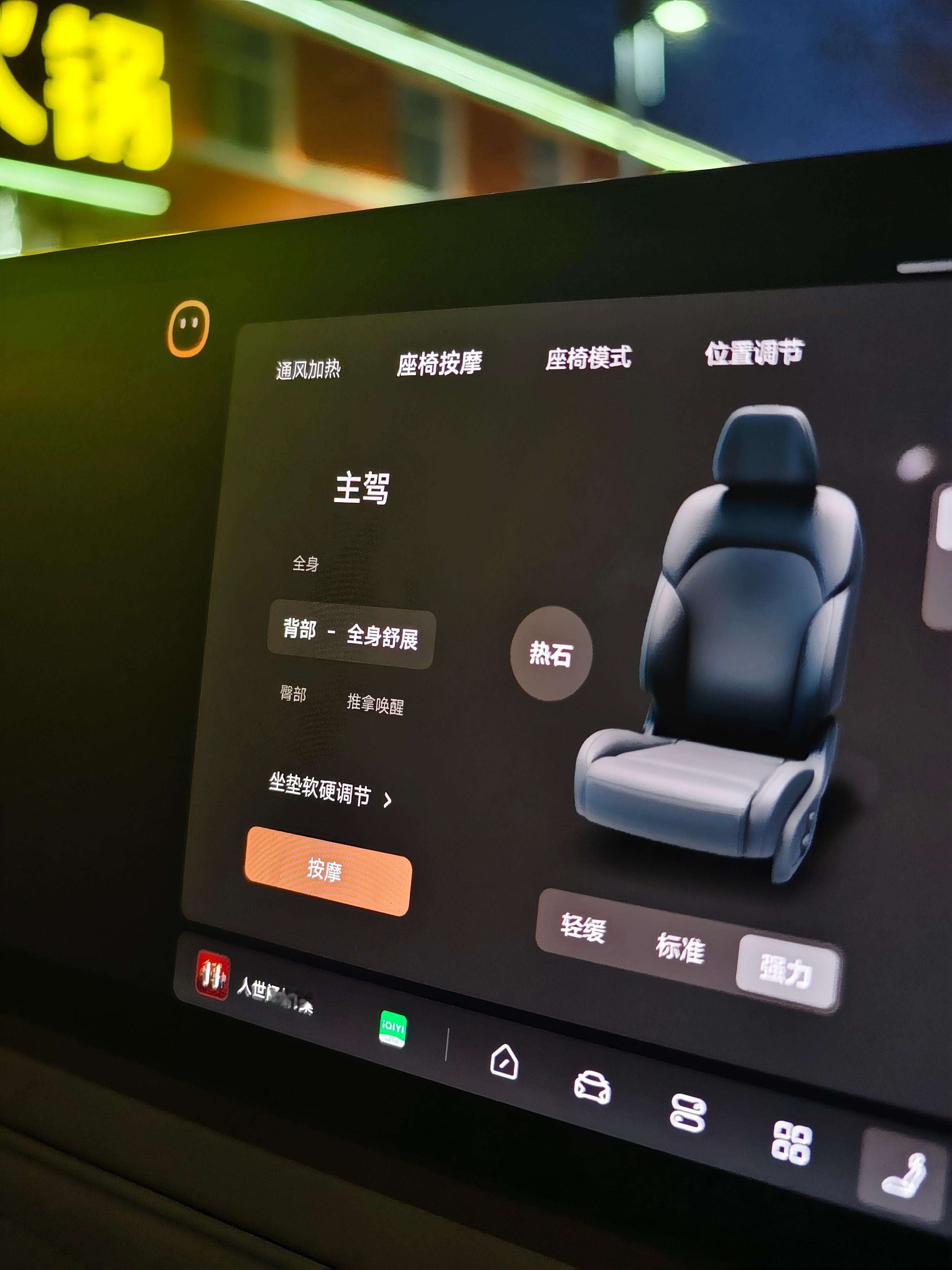 开车的人也特别爽,它是唯一带真实球头的座椅按摩,力道很大,最高档甚至需要一些受力体质才行。