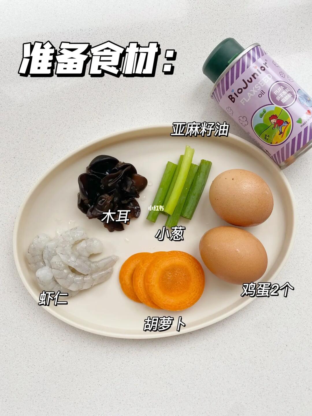 3⃣️锅中倒入亚麻籽油,放入葱炒香,加虾仁、木耳、胡萝卜翻炒。加一勺酱油调味,再倒入水淀粉勾芡,熬煮至浓稠即可。