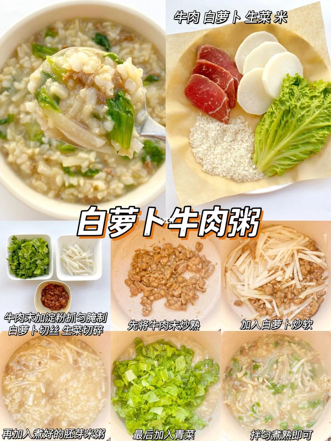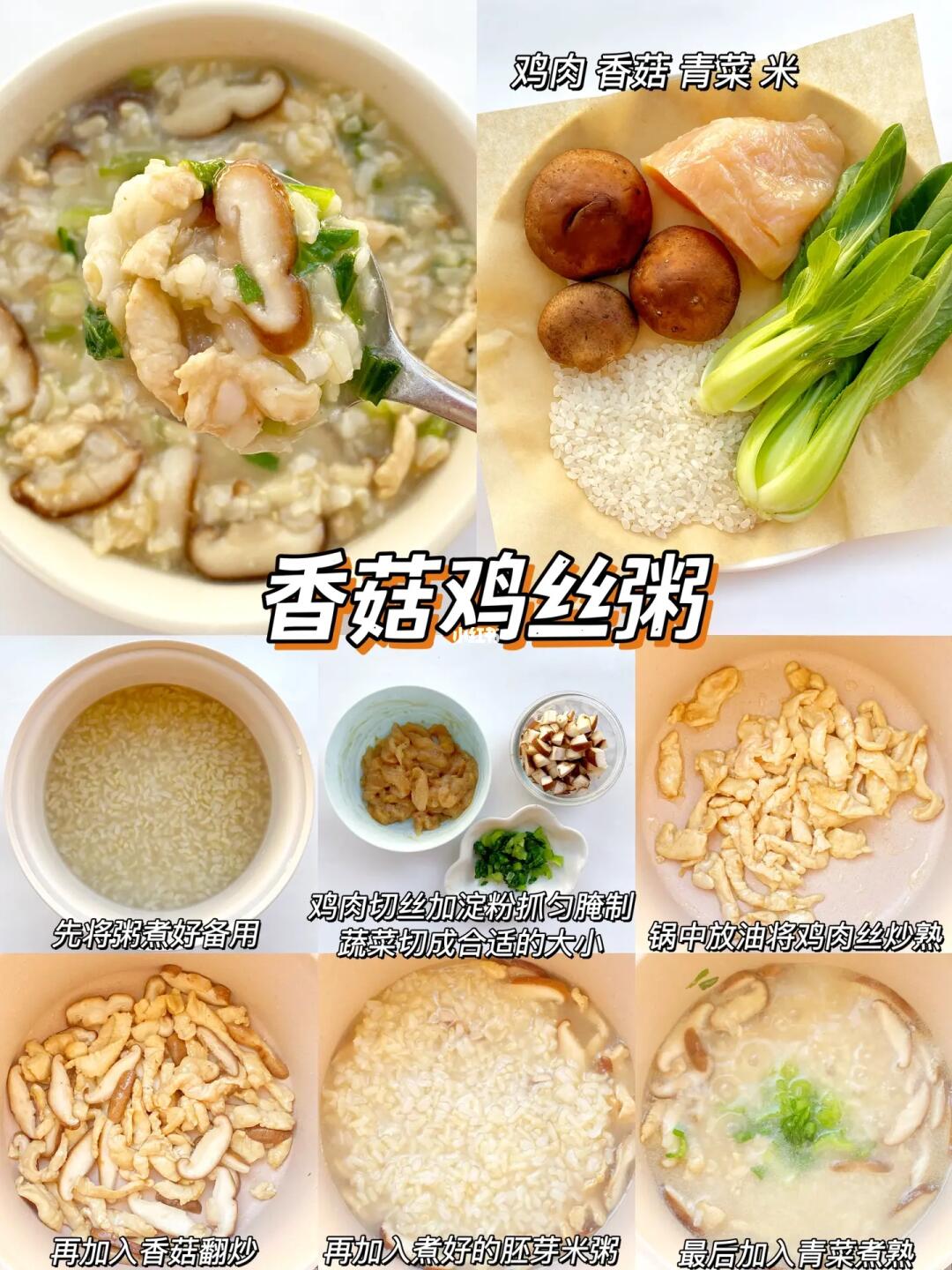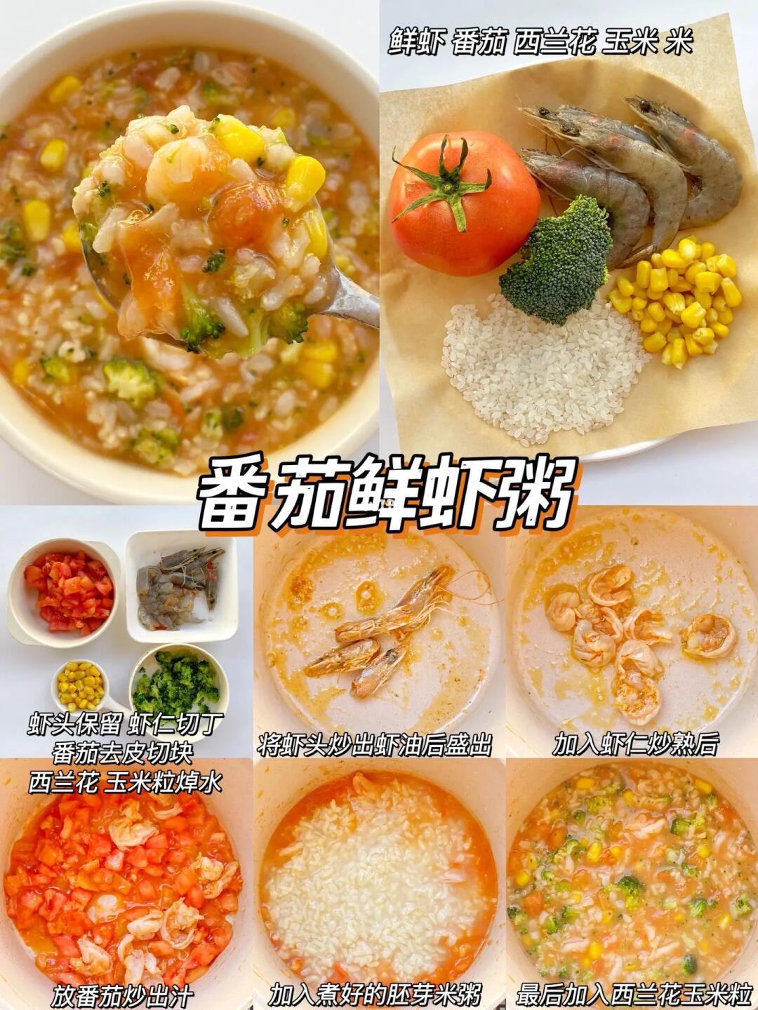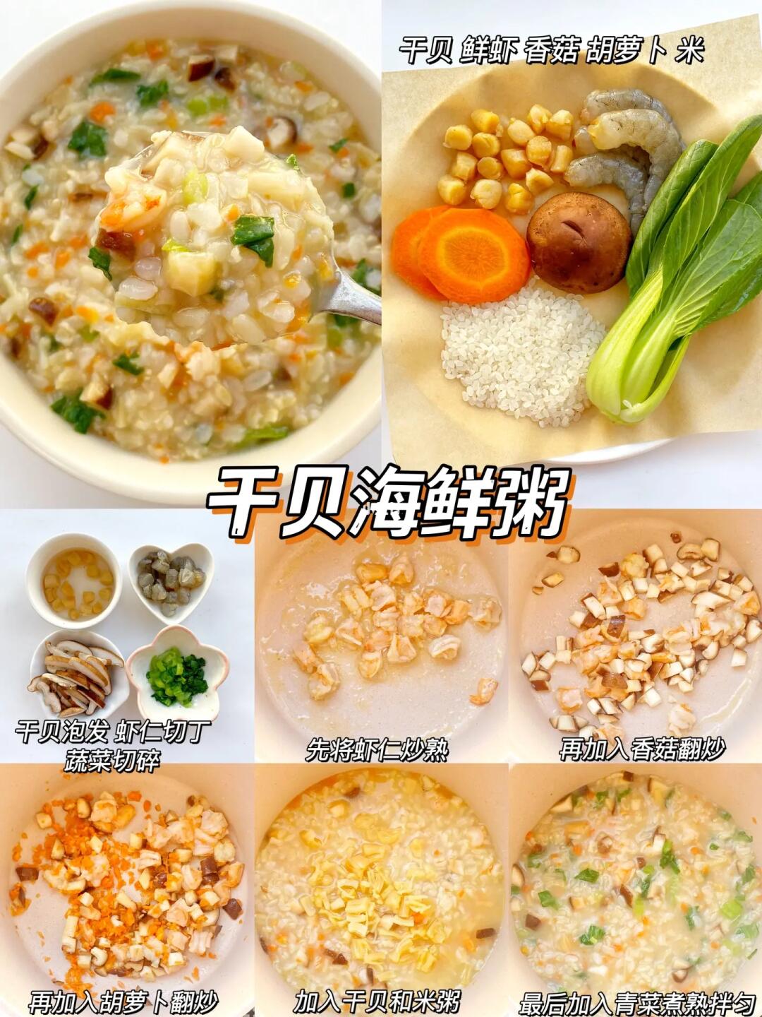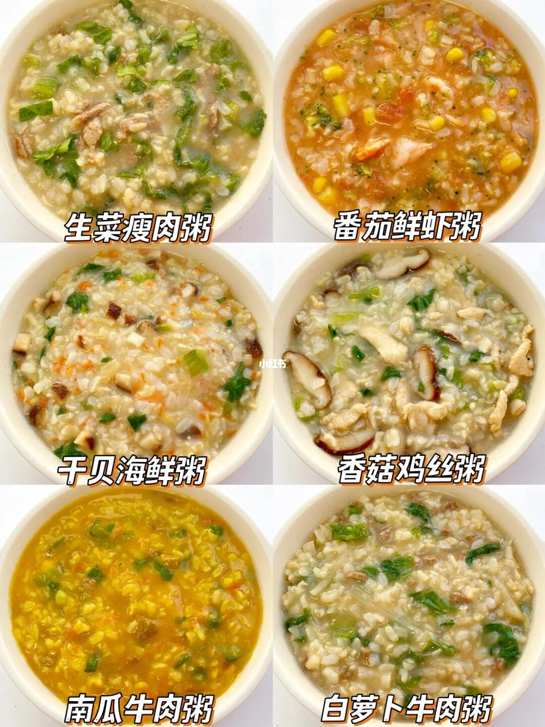 🥣六款好喝又营养的粥来啦,一次分享六款,可以每天都不重样~ ✨简单易做暖心暖胃,当做早餐晚餐主食,老少皆宜,全家可以一起喝哦~ - 🥬生菜瘦肉粥 🍅番茄鲜虾粥 🦀干贝海鲜粥 🍗香菇鸡肉粥 🎃南瓜牛肉粥 🥩白萝卜牛肉粥 - ✅具体做法和食材看图哦~ ▪️我一般喜欢先将粥煮熟,再添加配菜,这样食材不会煮太久,从而影响口感和营养。 ▪️调味方面可以根据自己的口味来调整哦,一岁以下的宝宝不加调味哦,可以用一些香菇粉虾皮提鲜,大宝宝或大人吃可以加些🧂盐或白胡椒粉~