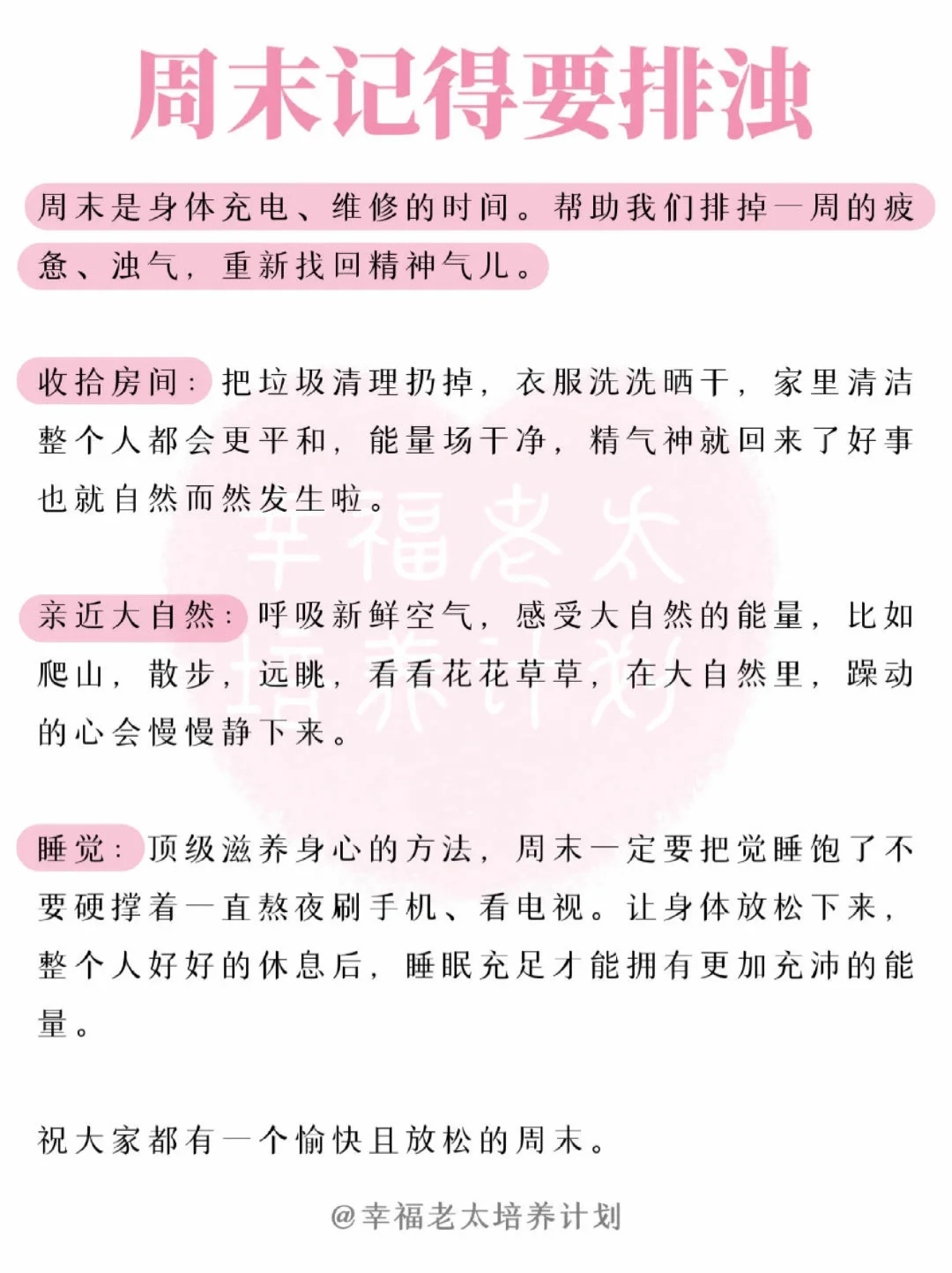 周末一定要好好休息好好玩,排掉一周的疲惫[赞R] 养生日常 生活日常 周末 健康知识科普 我的健康生活 日常生活里的快乐瞬间 健康养生 女性健康 女性成长 健康科普 养生小知识 养生 每周PK投票任务 你的周末有没有熬夜? [PK]