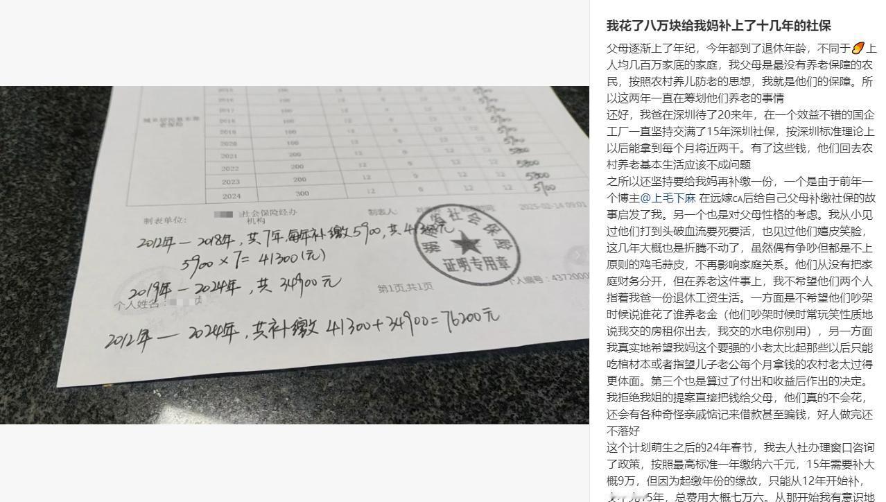 这次真要夸一句,中国年轻人能想出“养老+医疗”的双保障操作,真太有先见之明了! 这几年城乡的新一代子女,越来越讲究“养老和医疗两手抓”,不愿意让父母只靠一点微薄收入安度晚年。 放在前几年,很多农村或者小镇家庭的父母,根本没机会也难以交齐社保。大多数人年轻时一心扑在家里,钱全花在孩子身上,等到岁数大了,缴养老已经晚了。 直到补政策落地,孩子们手里有了点积蓄,终于能帮父母把这道“保险大门”打开。有年轻人干脆攒了几万块,一次性完成补缴,这样老人退休后可以每个月收到固定的生活费。 老人不再纠结子女给的钱要不要用,反而愿意把这份“国家养老钱”花在自己的日常需求上。 不过,实际做起来可不是一两句话的事。子女得先弄明白家里老人剩下多少年没有交,算好金额,攒钱准备,跑手续的时候还要照顾父母情绪。 好在不少人用自己的经历在网上分享了细节,有的人把父母原本最低档的社保升级到最高档,即便要十几万也照样咬牙上。 只要想到以后父母每月多几千块进账,日子能过得更踏实,怎么都值。 光把养老补齐还不够,很多年轻人已经注意到光有养老金并不能应对家里老人一旦生病住院的大额支出。很多家庭是在补齐养老之后,给父母加上了商业医疗保险。 网络上有数据显示,线上健康险购买者中,三四成是给父母买的。可见,这波双保险操作早就不是个例,而是在城市和乡村的年轻一代里形成了共识。 一边提升养老金,一边增加医保,成了大多数子女对老人保障的首选。有了养老打底,父母生活不用靠手心朝上向孩子要钱,有了医疗险,遇上大病冲击也能顶上一阵子。 对于许多年轻人来说,既是孝心体现,更是替自己减轻未来的压力。 那种攒着给父母买保险的心情,在很多人心里是一种安全感。毕竟多一个保障,老人多一份安心,年轻人也能在外拼搏时少一份牵挂。 不少人感慨,这波操作其实很现实。城市打拼的年轻人,房价压力、孩子上学、还要担心父母身体,如果没有一个科学的保障组合,真的很难有底气。 城市、农村、不同的生活背景,但子女给父母计划养老险和医疗险的心情,却都充满着责任和期待,而且也说明了一点:现在的年轻人其实很清楚自己能改变什么,不能改变什么。 说到底,年轻人这份担当,让今天的家庭多了一份安稳,也让自己的将来少了几分遗憾。