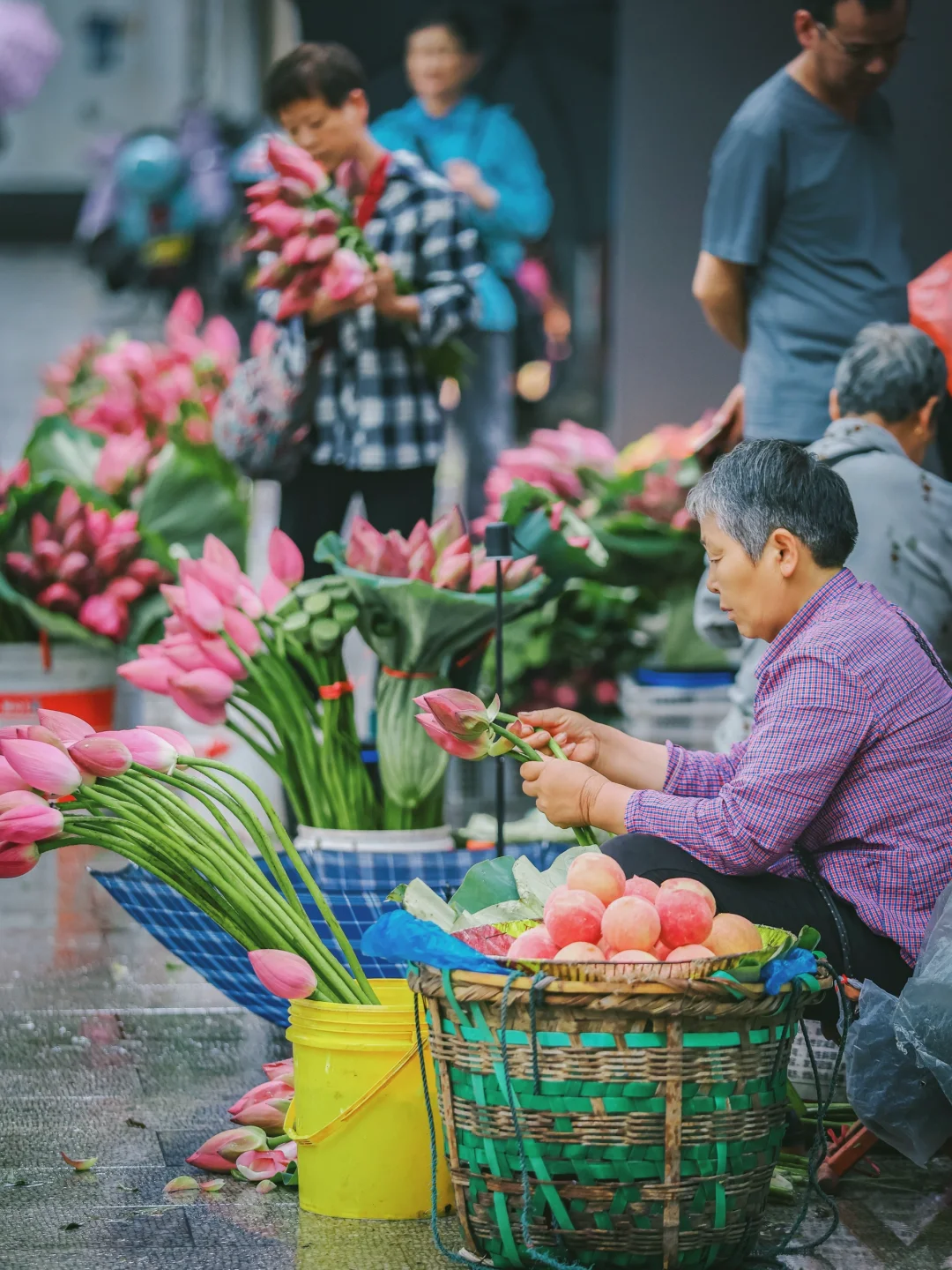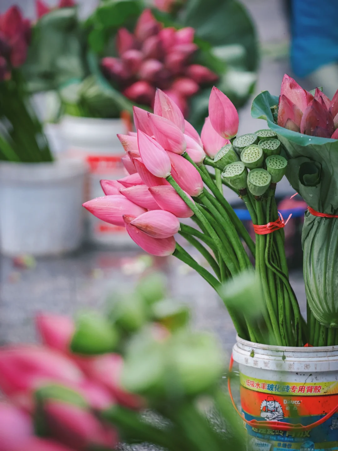 🌿苏州的夏天 总与荷花有场隐秘的约定🪷 当青石板路漫过荷香簪满鬓角 【荷花市集】便成了季节的诗笺✨ 这里的每步皆踏碎星光🌙 每眼都收尽市井画卷—— 莲篷筐晃过糖粥摊的热气 木桨划开戴望舒笔下的雨巷 转角处又撞见卞之琳的月光 这方被荷香浸软的天地 是苏州蘸着蝉鸣写就的夏之序章🌿 - ⏰:早上六点左右阿姨们就在了,荷花🪷卖完收摊 📍:苏州白塔西路与皮市街交叉口 - 图片拍摄于2024.6.26 目前只有少量荷花🪷还没有莲蓬哦!