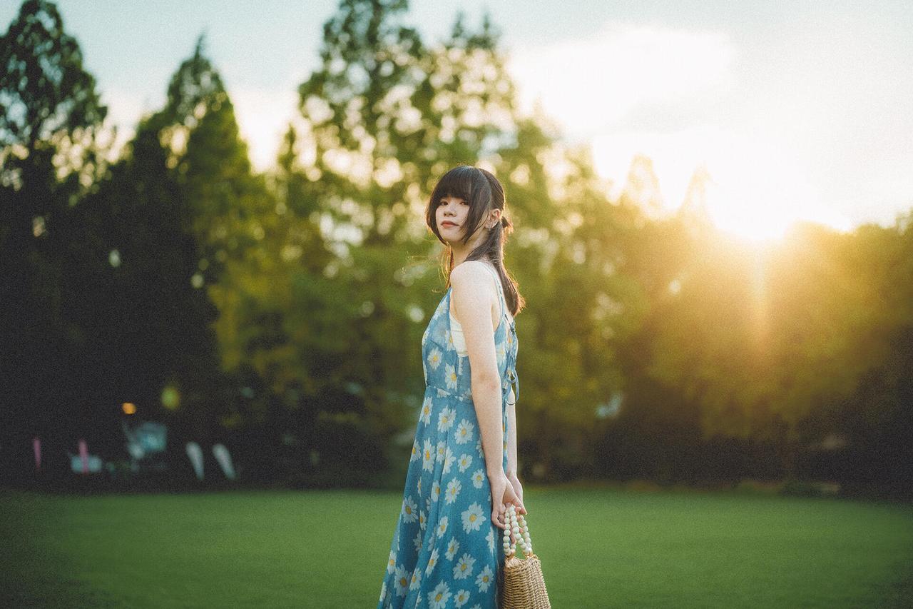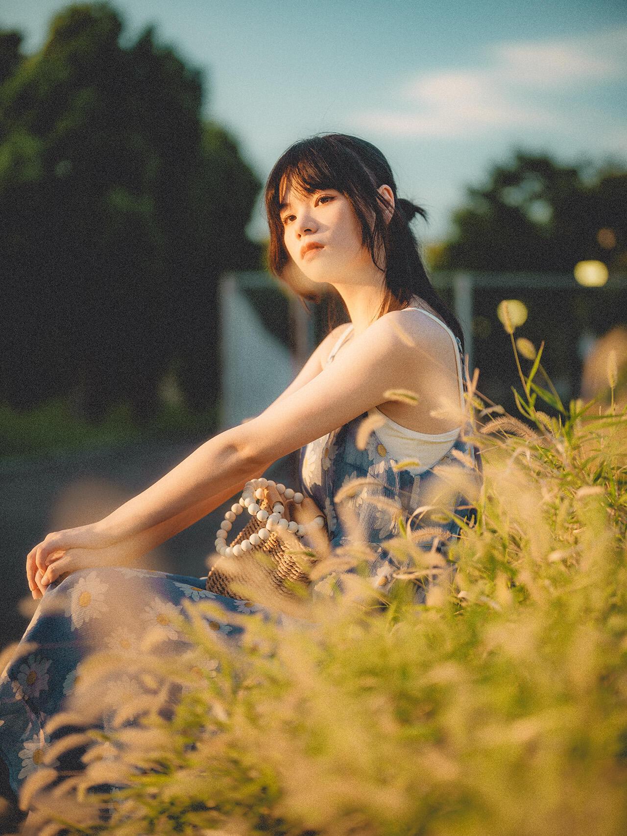 草间的夏末,是我们对青春的记忆。摄影师想要定格一个沉浸式夏天,所以将前景的狗尾草虚成一片金雾,把人物裹在夏天里。再去看光线,成了落日最后的一抹温柔,从侧方裹住手臂和裙角,连草叶的绒毛都泛着暖光,把夏末的唯美具象成了可触碰的质感。 从人物的姿态上看,,不是端着的拍照姿势,是真的坐在草里放空的状态,串珠包搭在腿上的弧度、微垂的眼尾,说是在拍照,更像是在重温一个夏天。这样的画面,你喜欢吗?