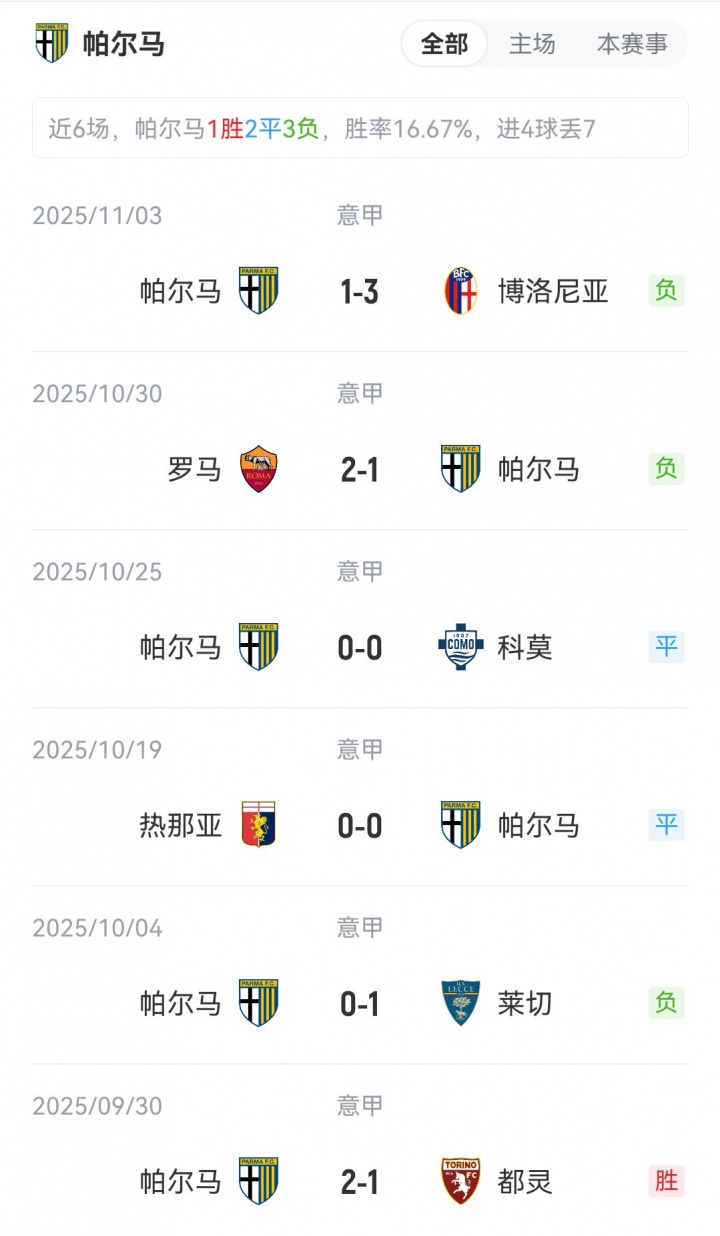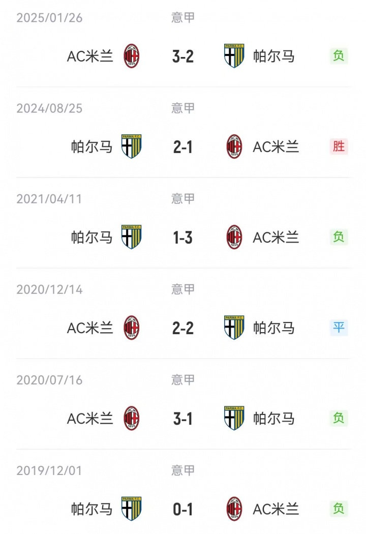 本场比赛前,帕尔马1胜4平5负,积7分排名意甲第17;米兰6胜3平1负,积21分排名意甲第3。