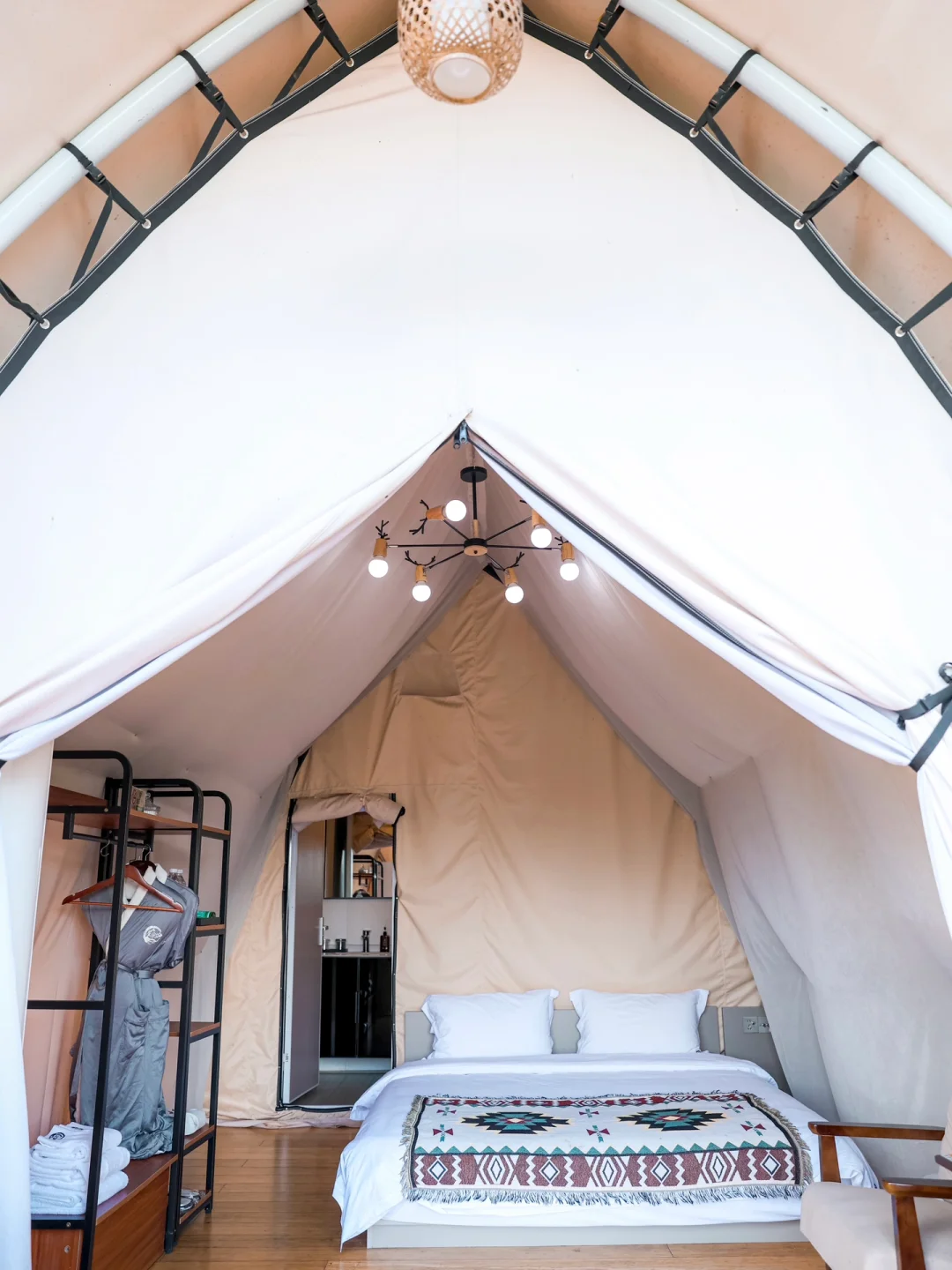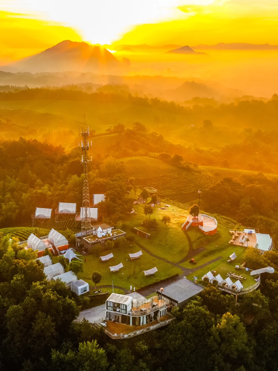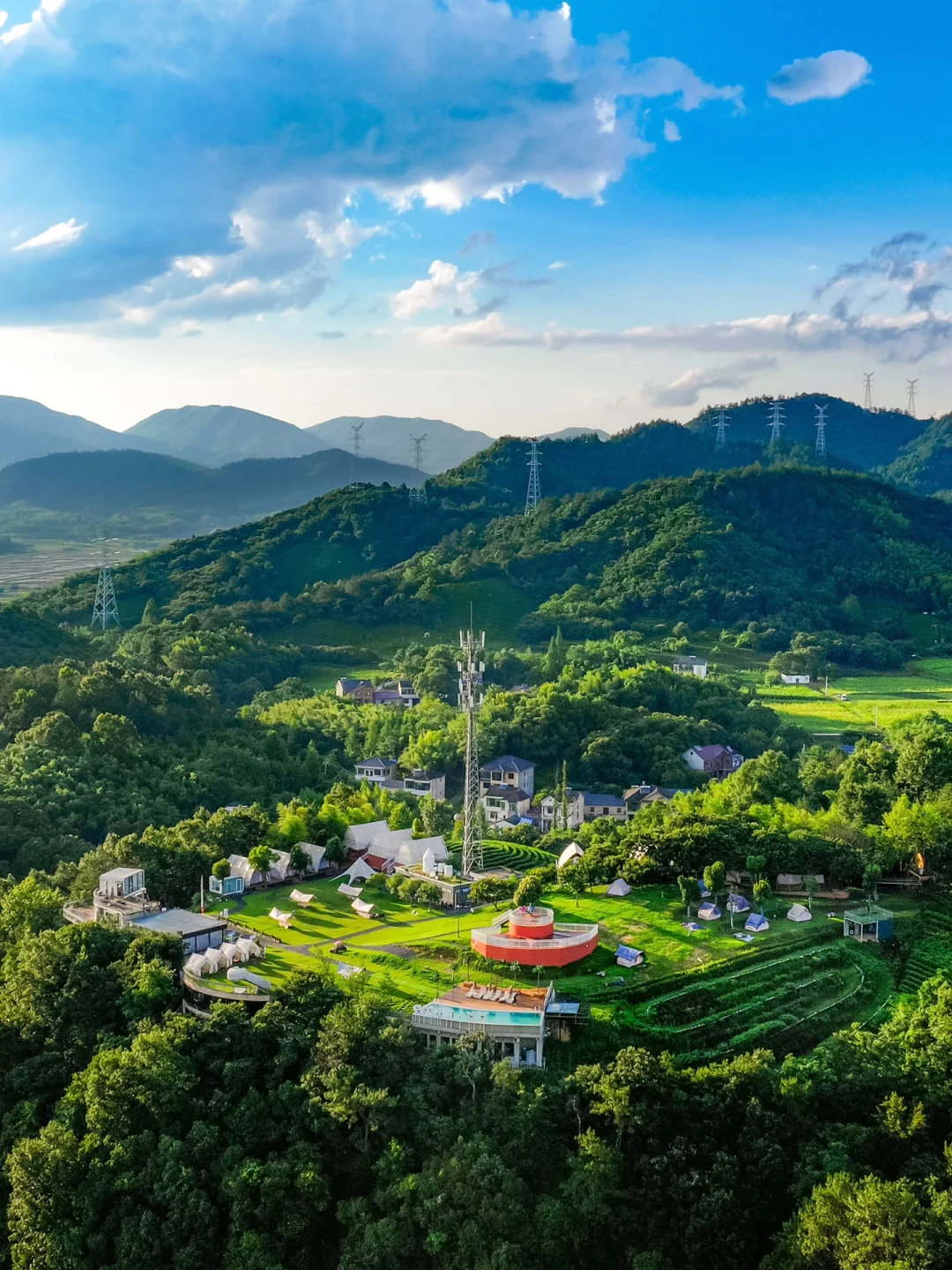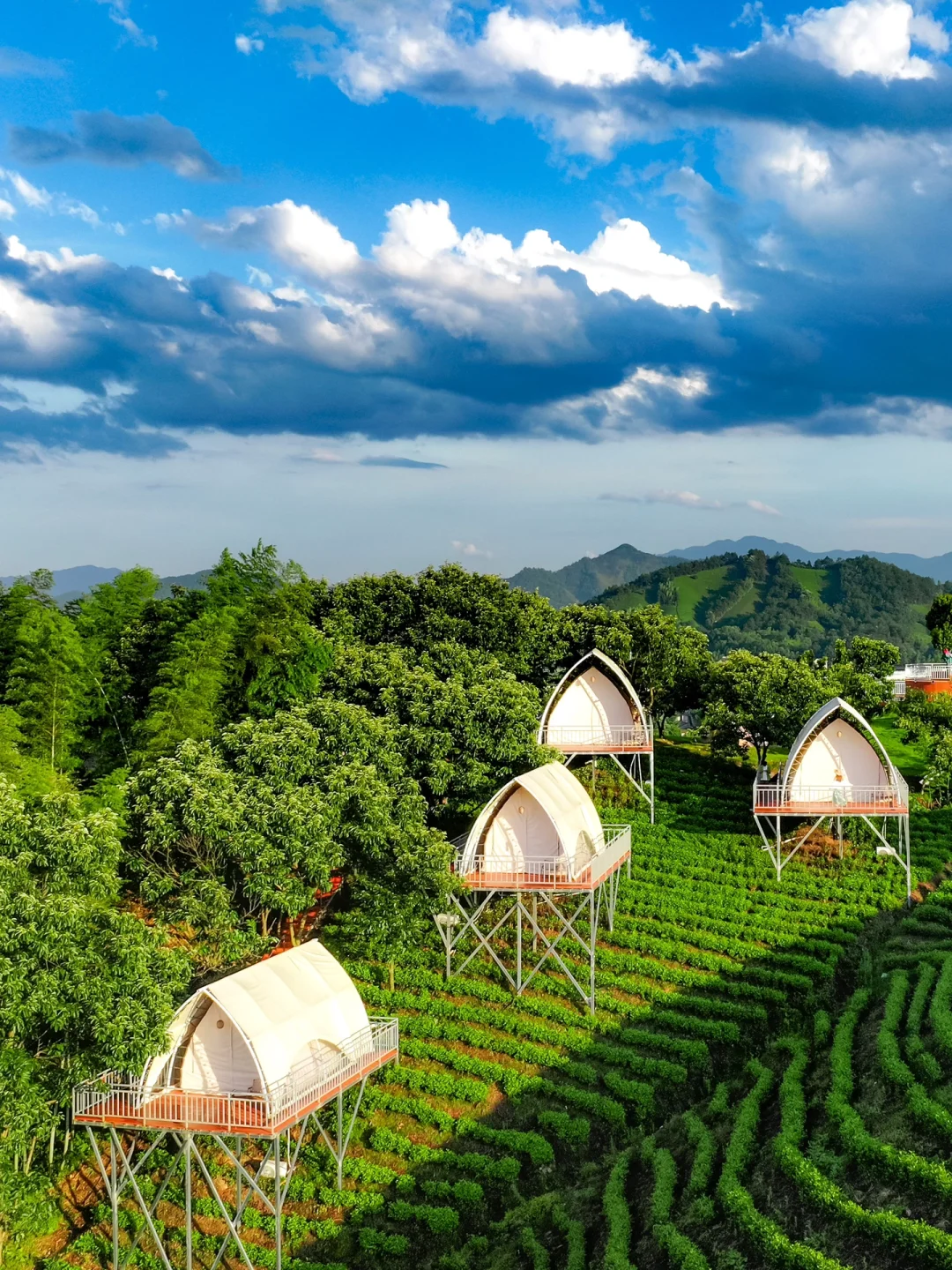 整个营地坐落在竹林和茶山之间🌲面朝万亩田地🌿提供了一个天然的绿色背景💚在这里,不仅可以在白天可以拍到唯美的画面🌿夜晚也能拍到璀璨星河🌌