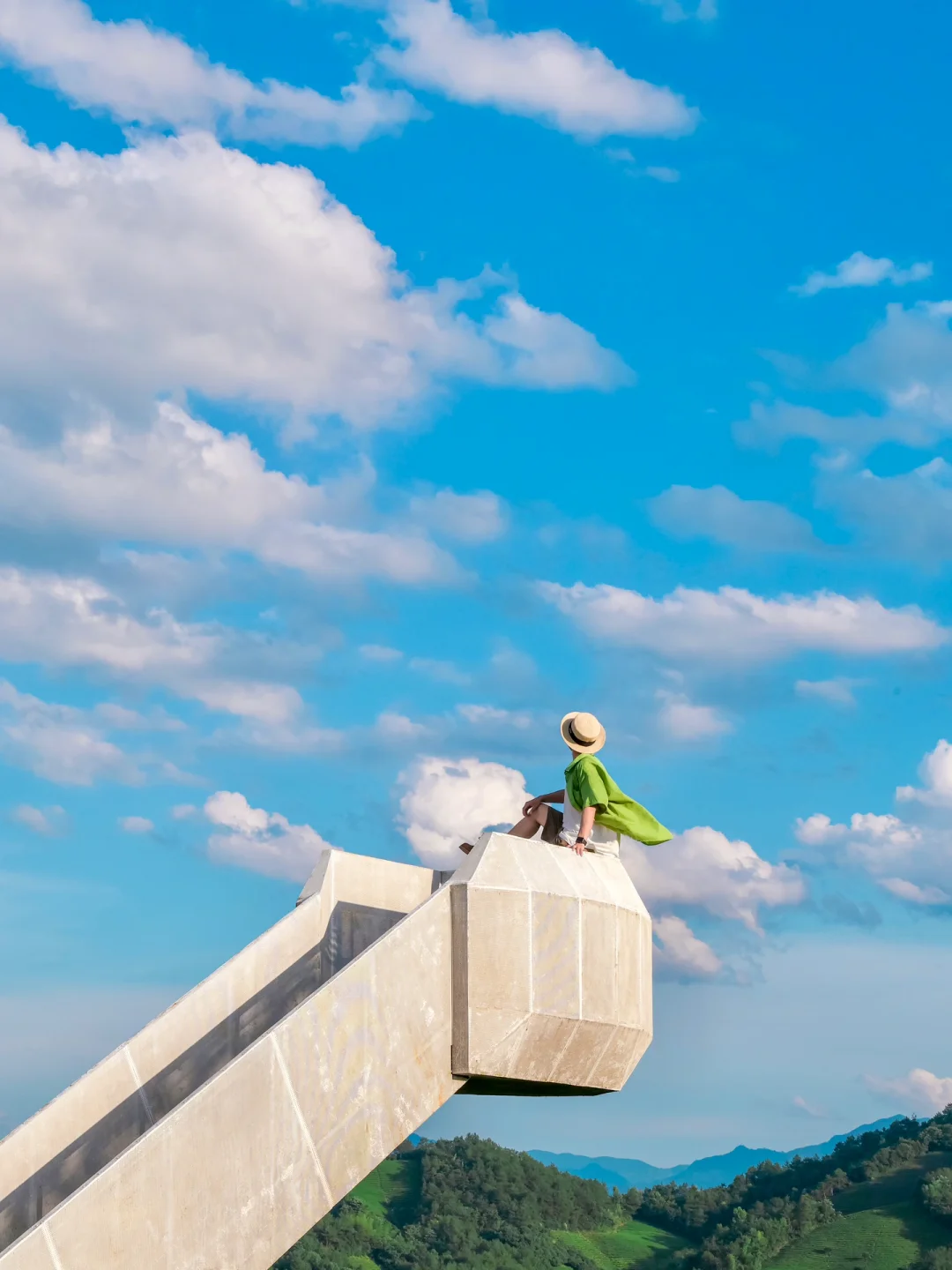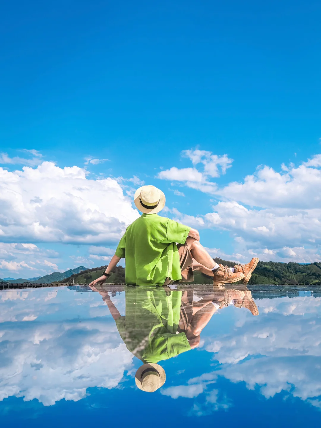 站在或者坐在无边泳池旁边的天空之镜上🪞