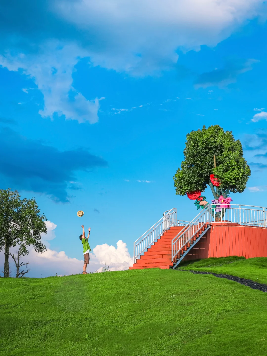 在斜坡往上拍,好似在广阔的大草原上漫步🌿蓝天白云☁️草原和那孤独的一棵树🌳简直就是宫崎骏漫画里才有的世界