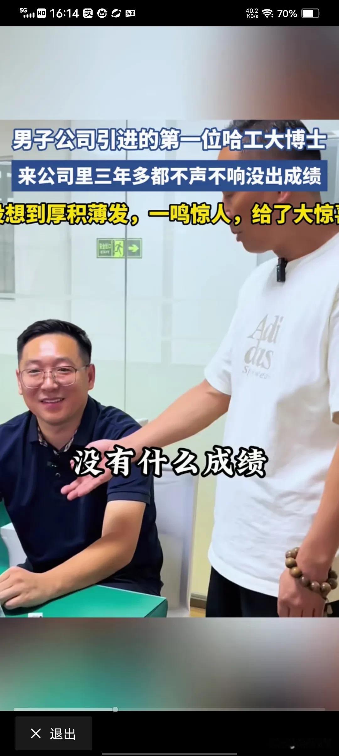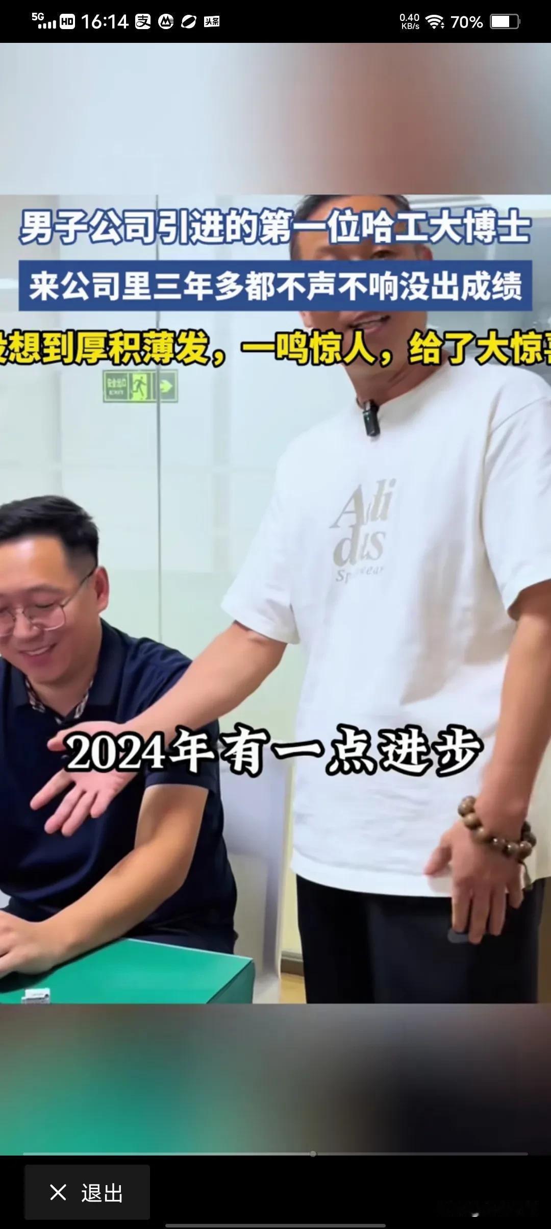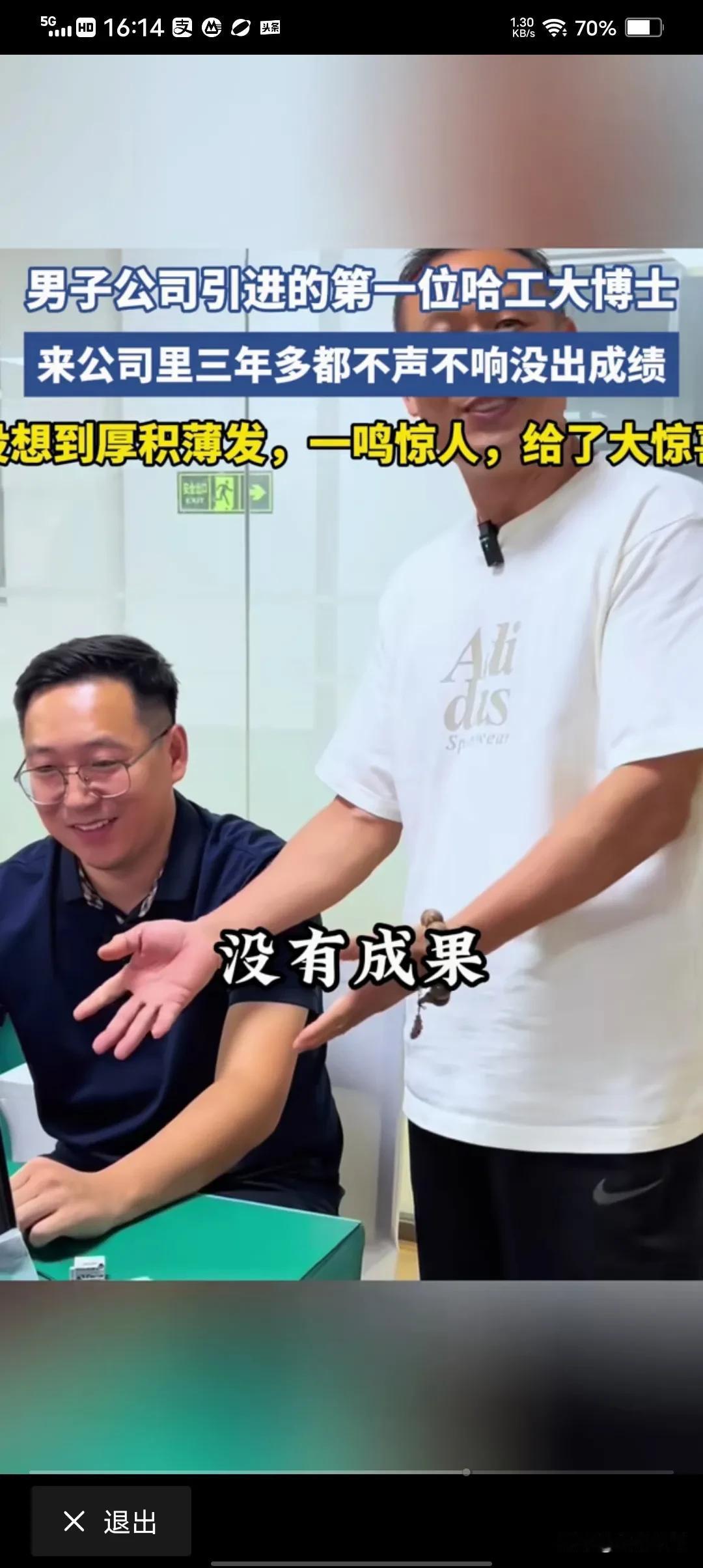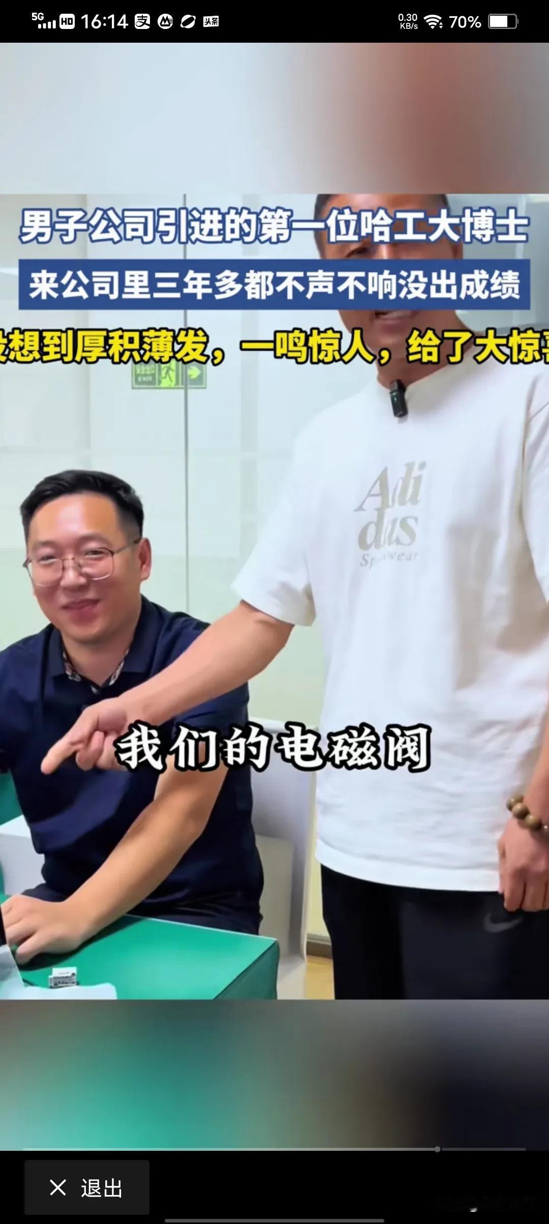 广东一个电磁阀公司,老板招聘了一个哈工大博士,在公司专门做研发的,2022年没有成绩,2023年也没有成绩,2024年有一点点进步,但还是没有成果,2025年哈工大博士告诉老板公司的电磁阀已经是世界前沿了!老板非常开心!这个故事让我想起了任正非说华为的俄罗斯研发中心,招了一个俄罗斯数学天才小伙,内向也不会谈恋爱,每天就是数学,公司也不知道他在算什么,每天上班就是玩电脑,而且工资很高,在研发中心上班十几年,没有出成果,突然有一天告诉任总,他把2G到3G的算法突破了,从2G到3G不需要更换设备,只要升级算法,一下子华为就领先世界了! 一个老板或者一个公司的制度可以容忍员工几年甚至十几年不出成果,也不打扰他,还给他发高工资,这是何等的胸怀,只有这样信任科研人才,才会有科研上的突破!