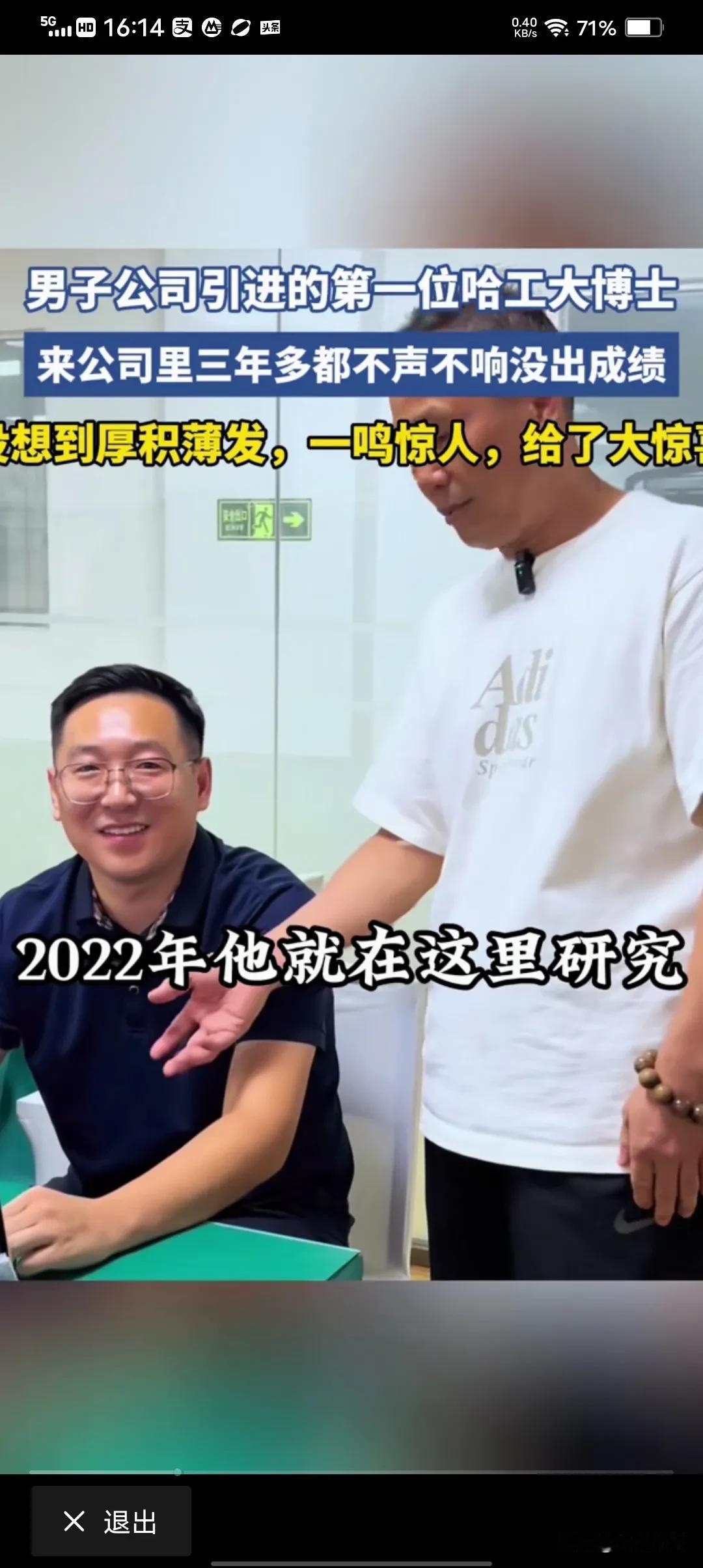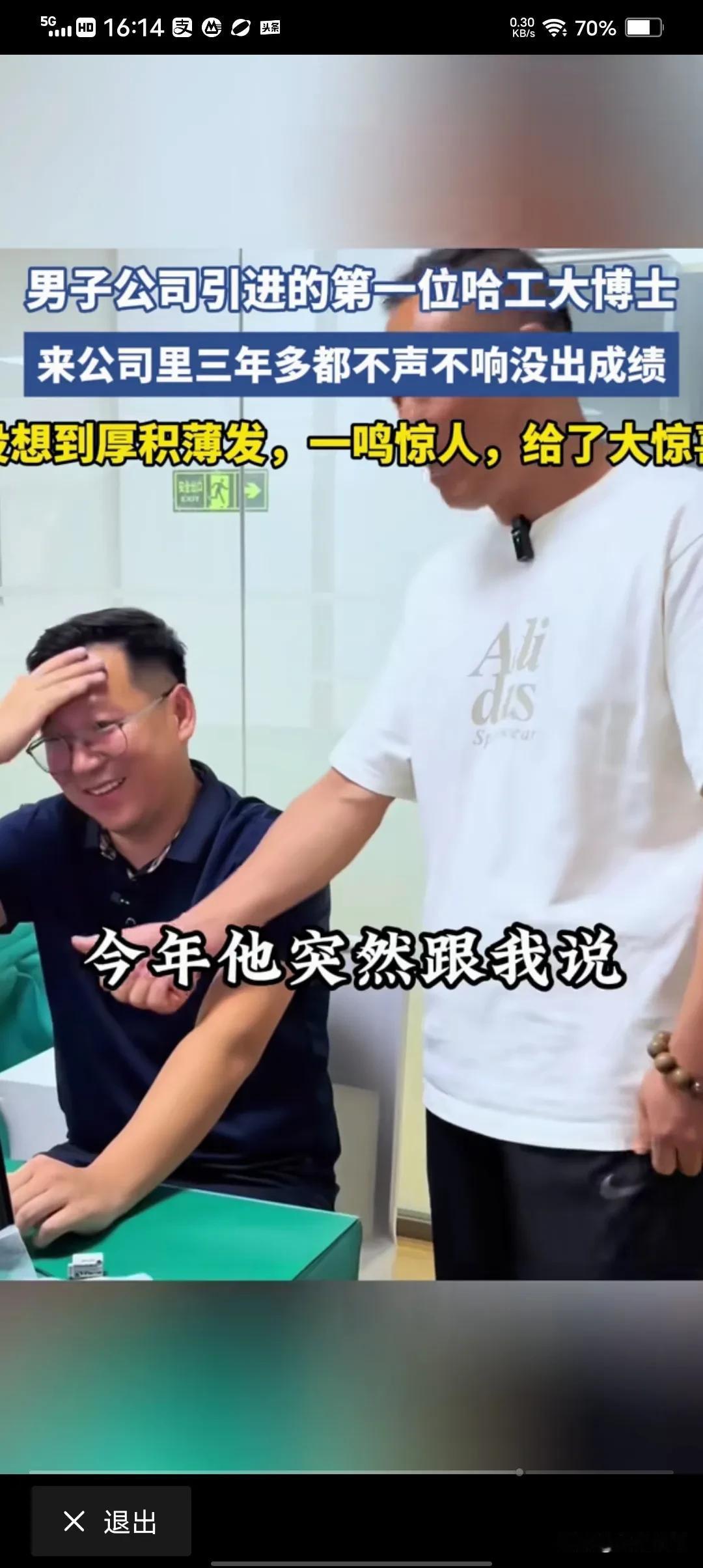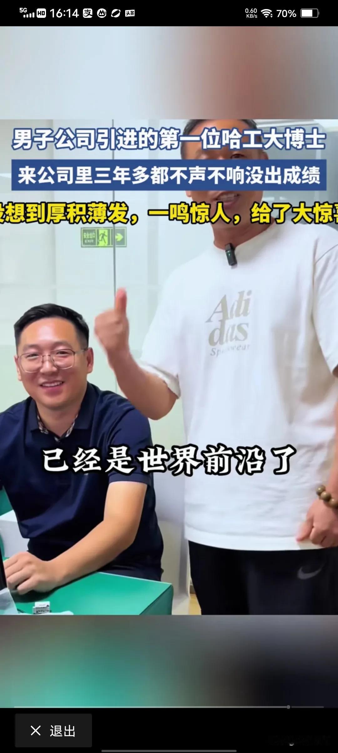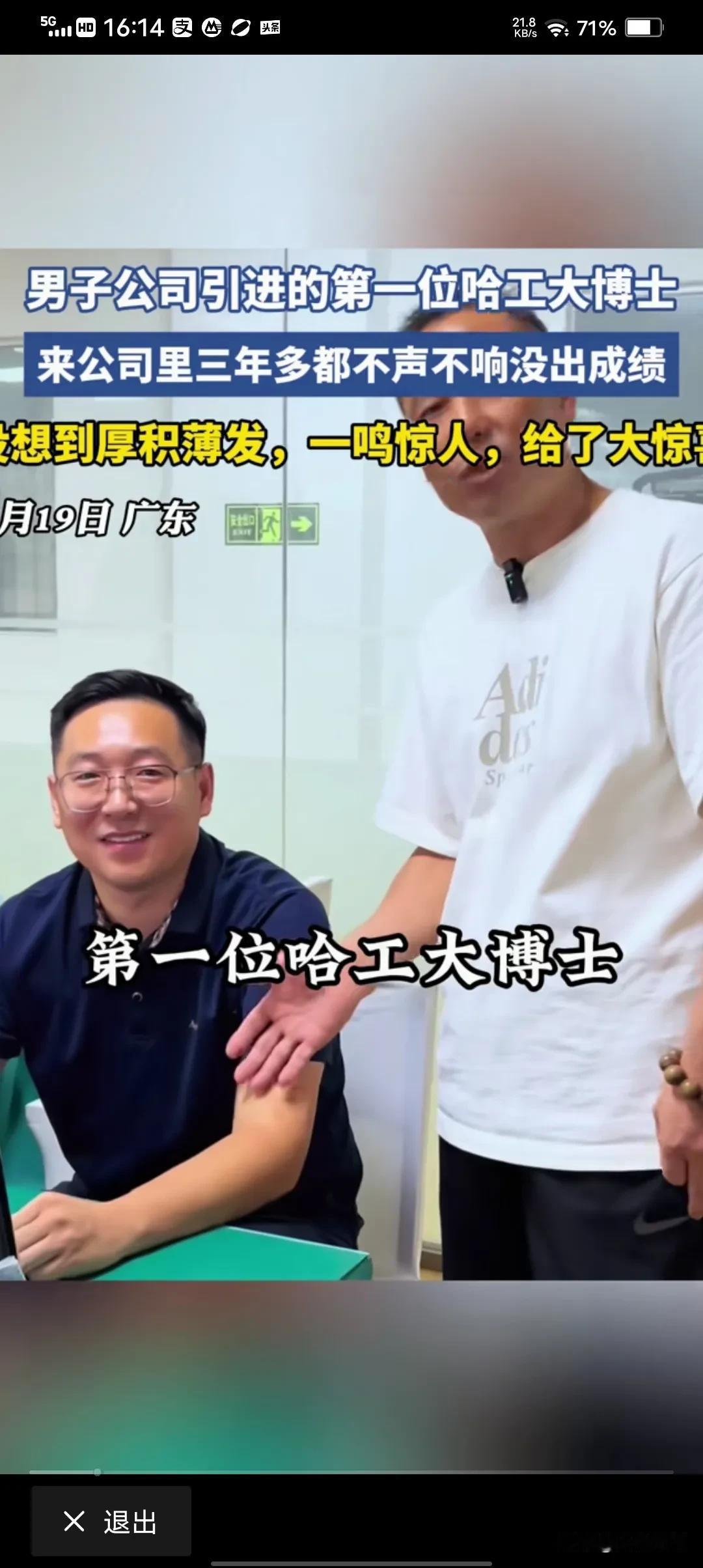 广东一个电磁阀公司,老板招聘了一个哈工大博士,在公司专门做研发的,2022年没有成绩,2023年也没有成绩,2024年有一点点进步,但还是没有成果,2025年哈工大博士告诉老板公司的电磁阀已经是世界前沿了!老板非常开心!这个故事让我想起了任正非说华为的俄罗斯研发中心,招了一个俄罗斯数学天才小伙,内向也不会谈恋爱,每天就是数学,公司也不知道他在算什么,每天上班就是玩电脑,而且工资很高,在研发中心上班十几年,没有出成果,突然有一天告诉任总,他把2G到3G的算法突破了,从2G到3G不需要更换设备,只要升级算法,一下子华为就领先世界了! 一个老板或者一个公司的制度可以容忍员工几年甚至十几年不出成果,也不打扰他,还给他发高工资,这是何等的胸怀,只有这样信任科研人才,才会有科研上的突破!