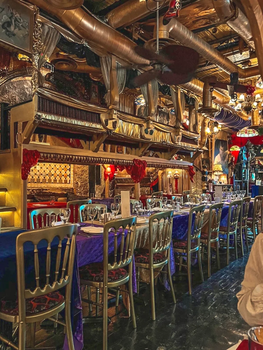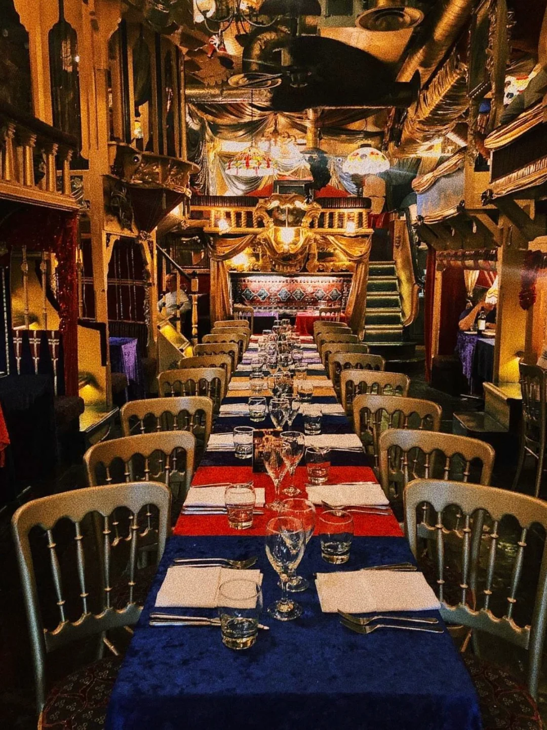 ▪️ 餐厅像一个小型的私人歌剧院,设有天鹅绒桌布和私人歌剧院包间,还有部分华丽的舞台装置和各种复古奇妙的小装饰品