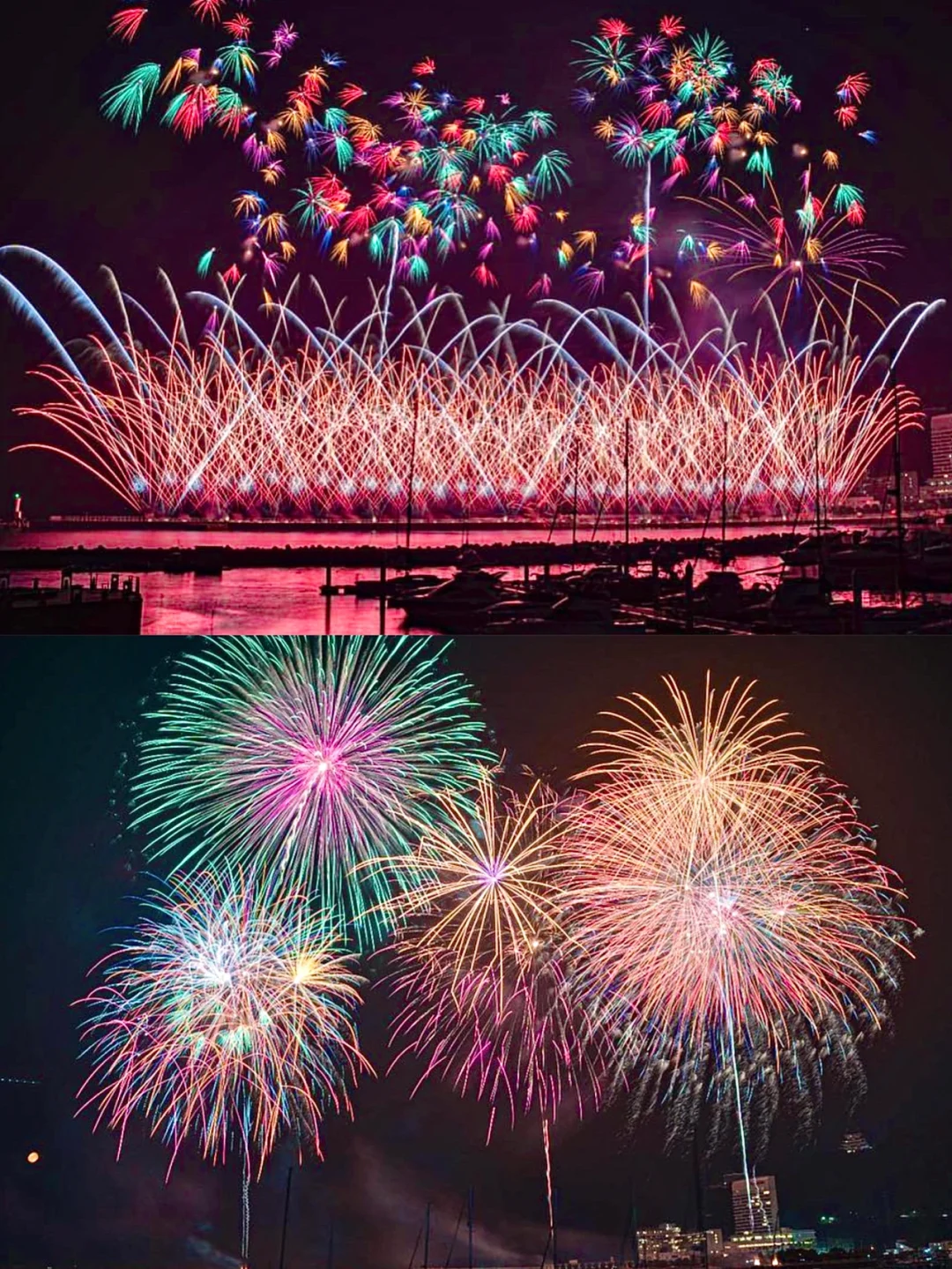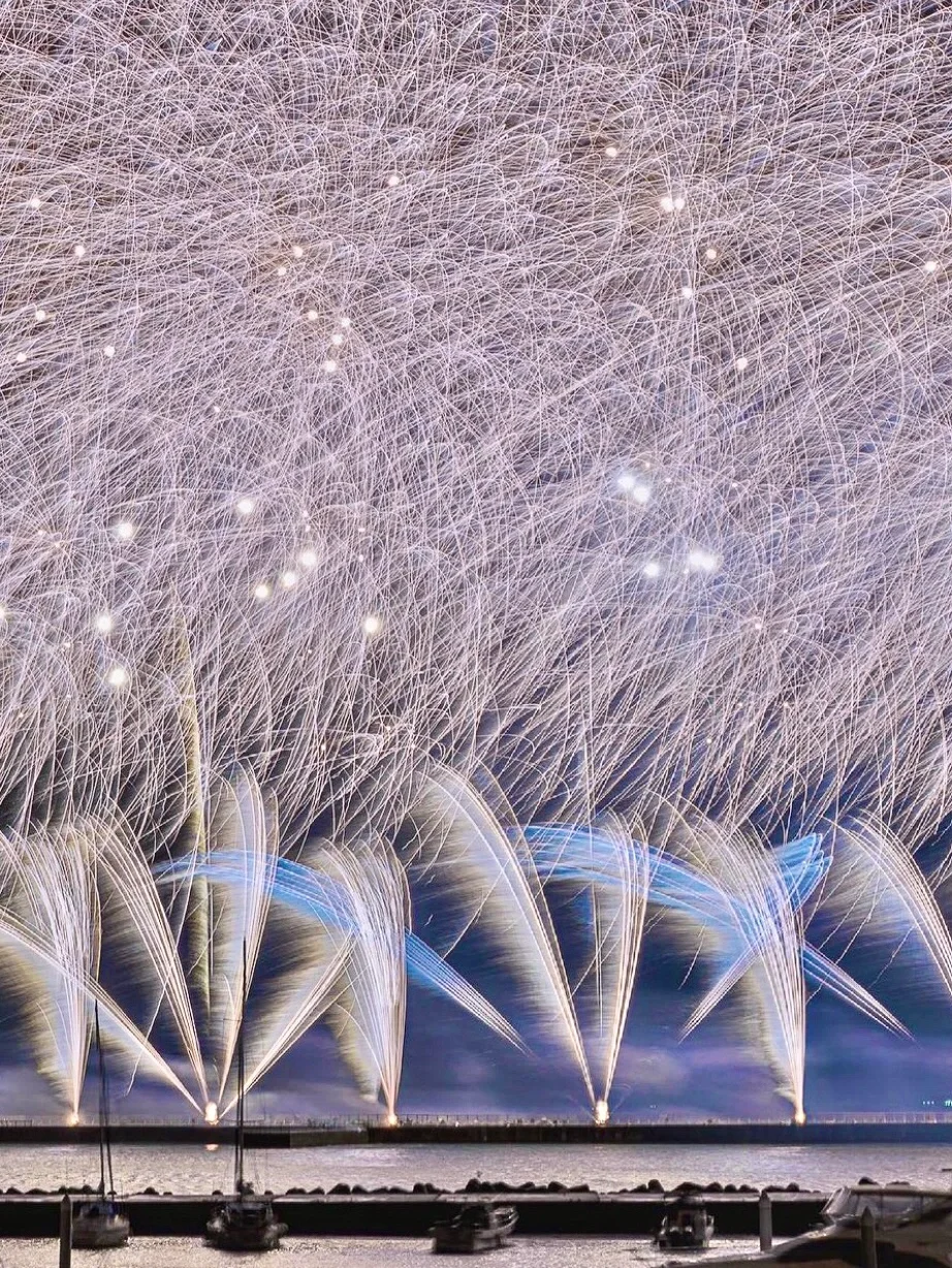烟花🎆在夜空中盛放,美轮美奂的花火倒映在水面上,压轴的“大型空中尼亚加拉”,美得让人忘记眨眼!