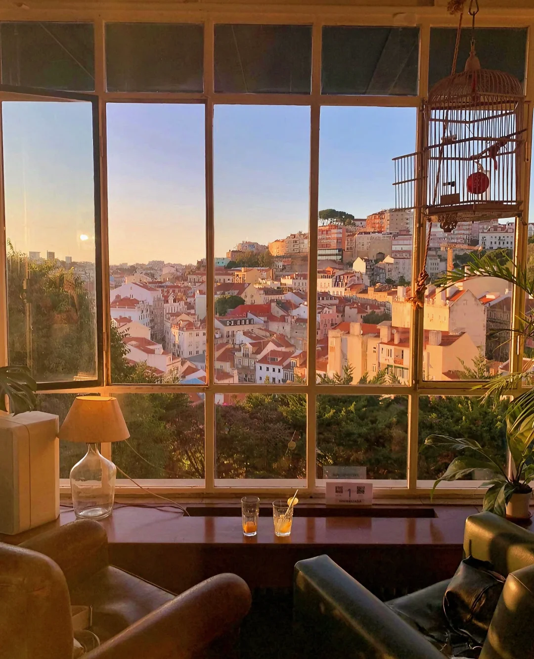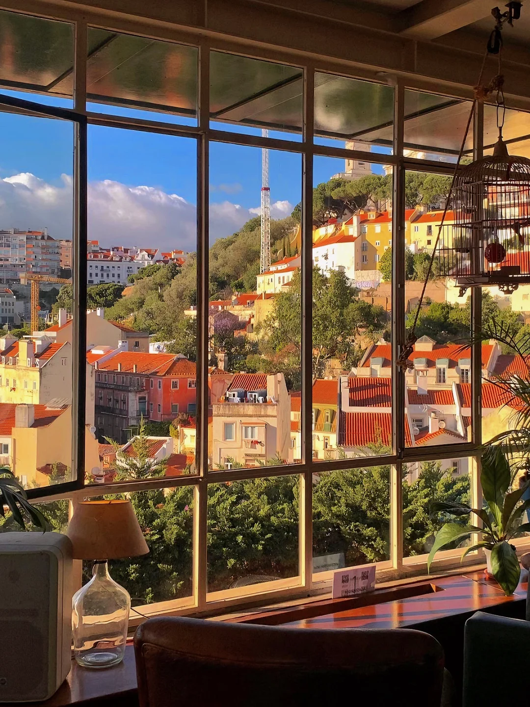 🔹这家店位于里斯本卡斯特洛 (Castelo) 街区的中心地带,奇特且浪漫,最引人注目的莫过于可以欣赏日落风景的大窗户了
