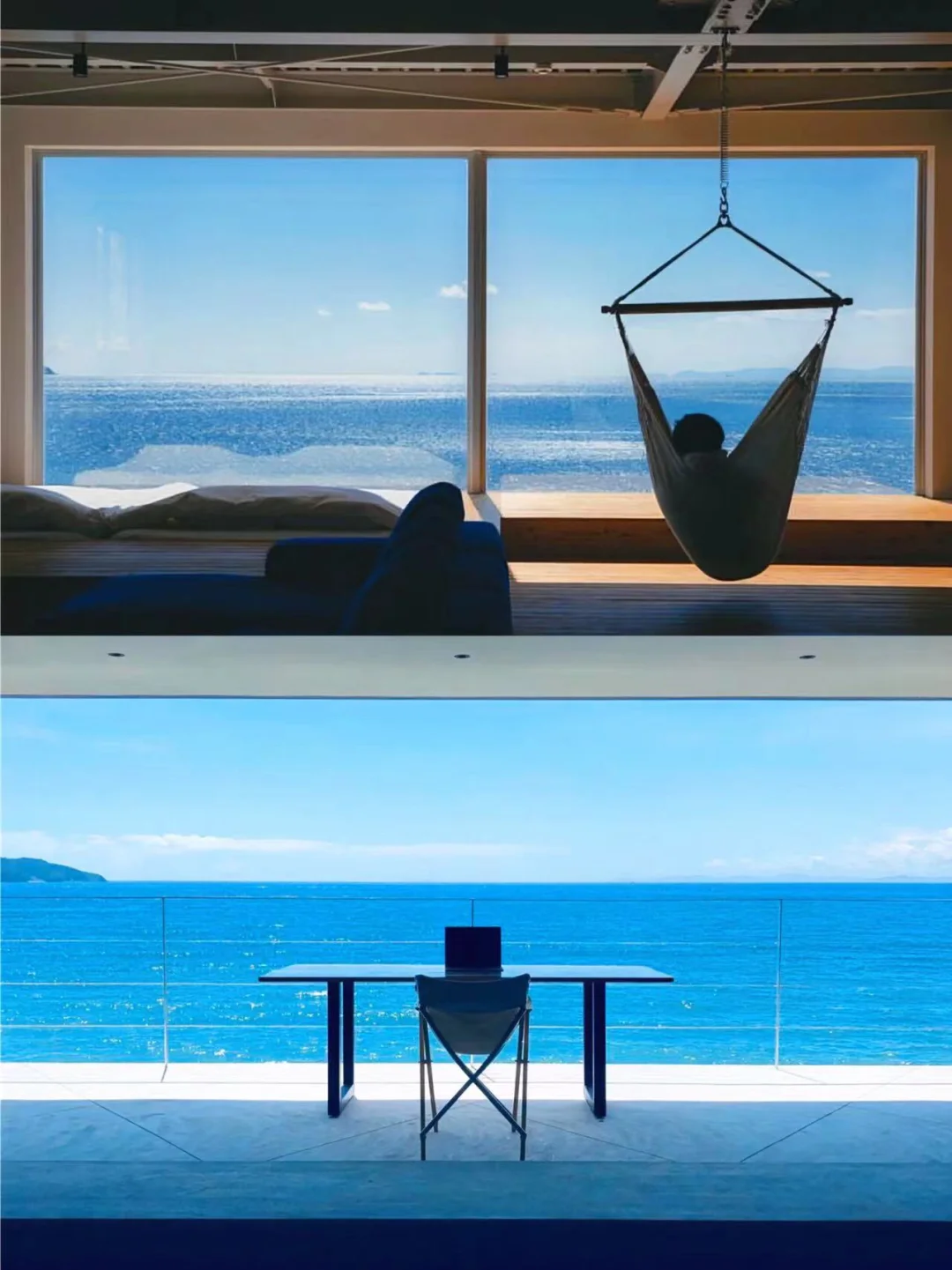 民宿【nook】意在打造安静、美丽、远离城市喧嚣的房子,走进民宿就可以看到一望无垠的大海,就像是住在海上的感觉,在这里会忘记时间,慢慢地感受大海带来的疗愈感。