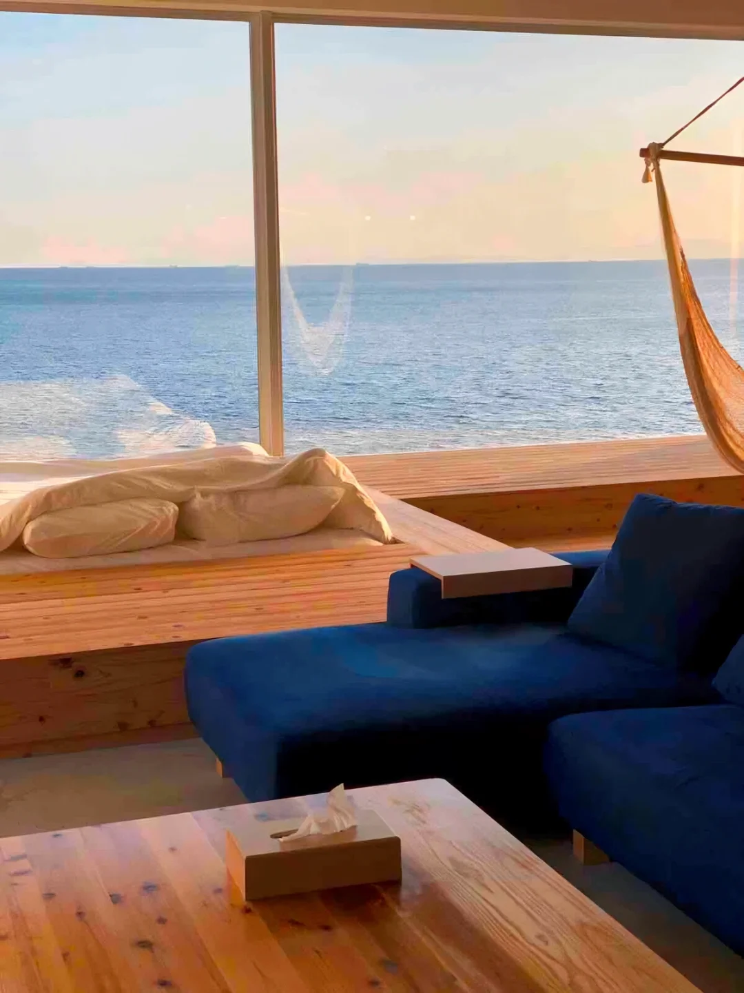 ▪进入房间内站在吉野雪松木制制成的地板上 ,闻着房间里飘散着雪松的香味,像是住进森林小屋,然而窗外却是是广阔无垠的大海!像是在度假中一样放松。