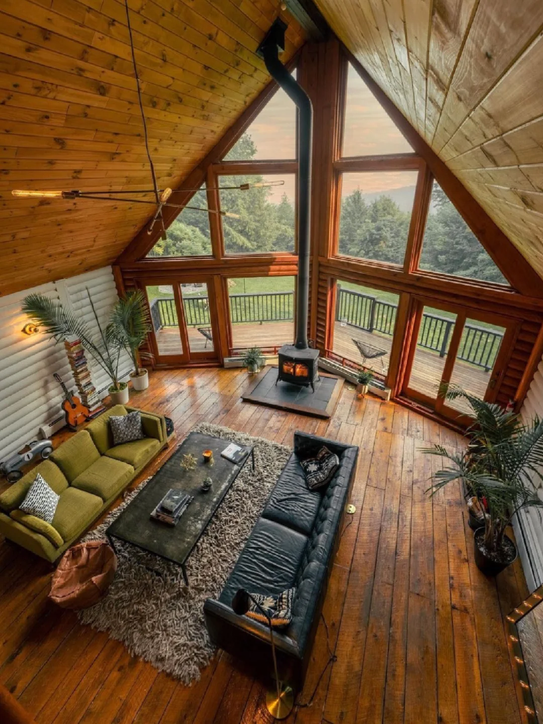 ▫️ 大教堂一样的窗视野很开阔,还有燃木火炉氛围感十足