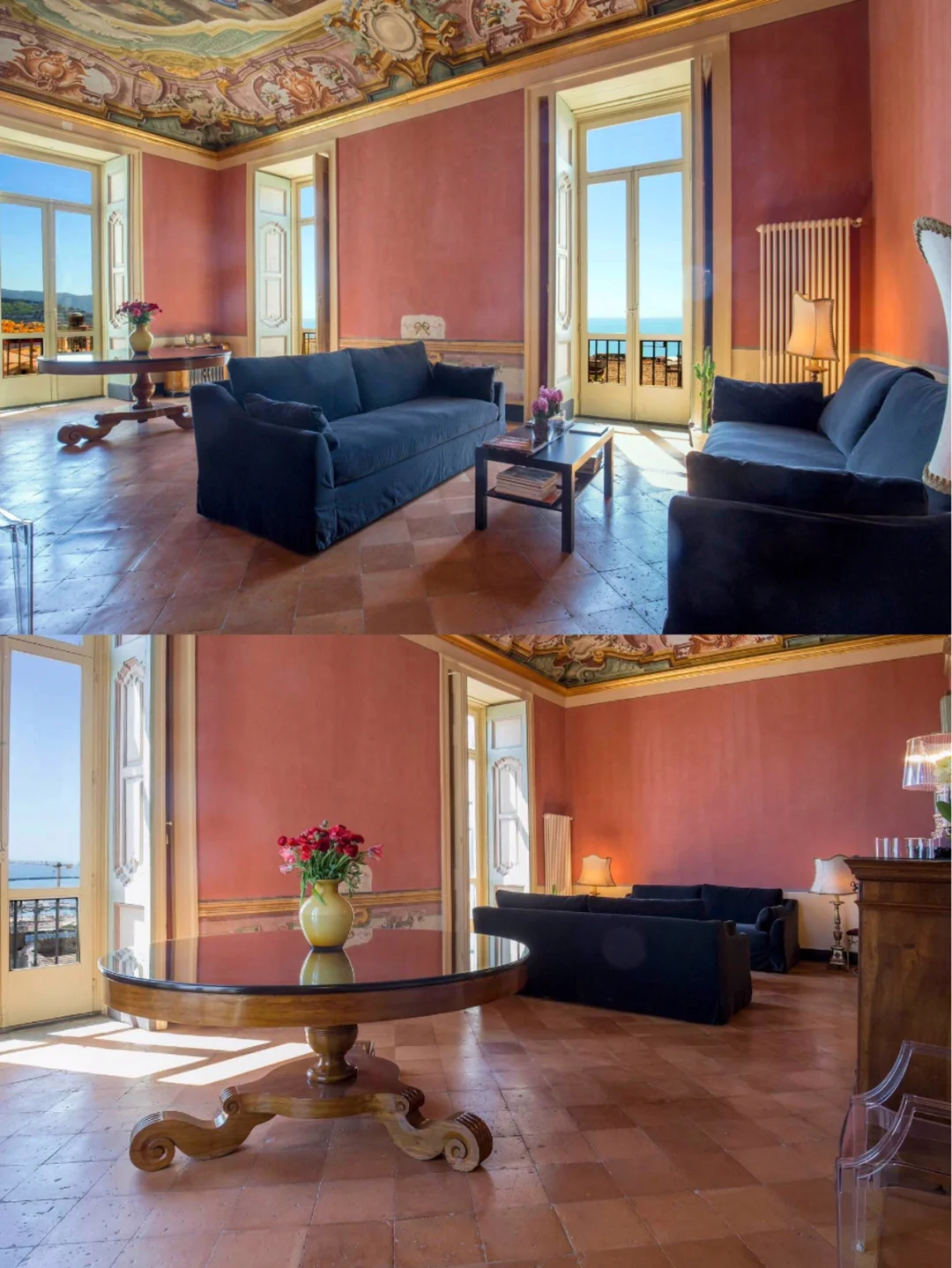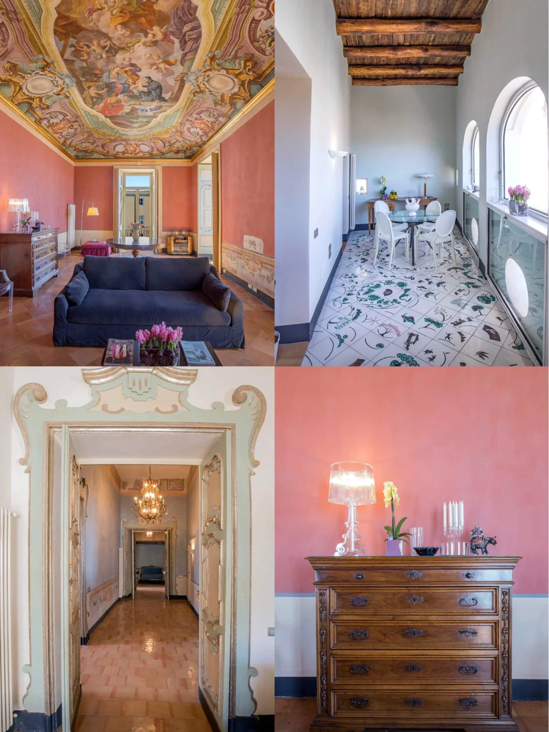 ▫️房间内具有独特性、高高的天花板和原始壁画以及赤陶地板,现代家具与古董家具搭配的很巧妙
