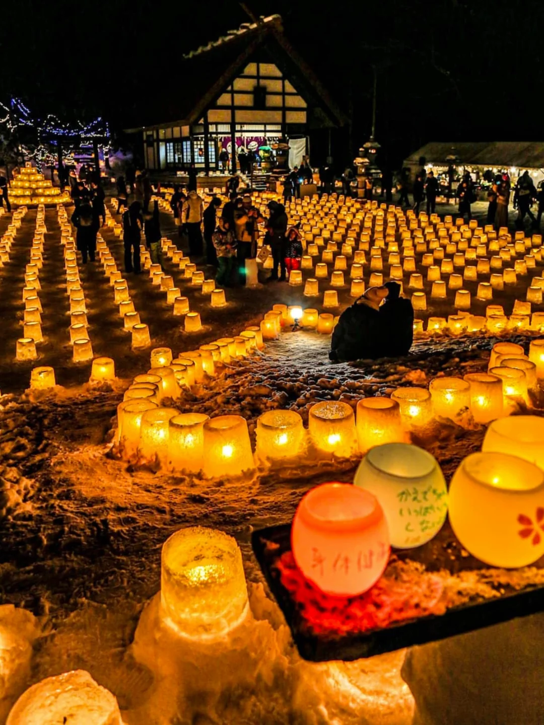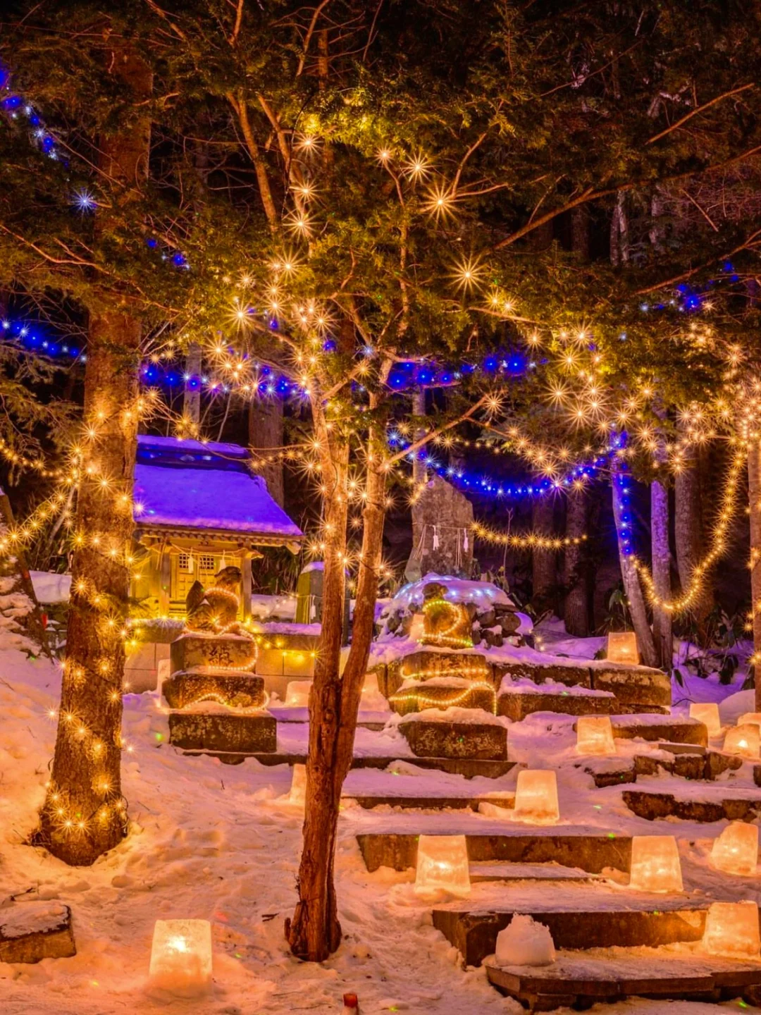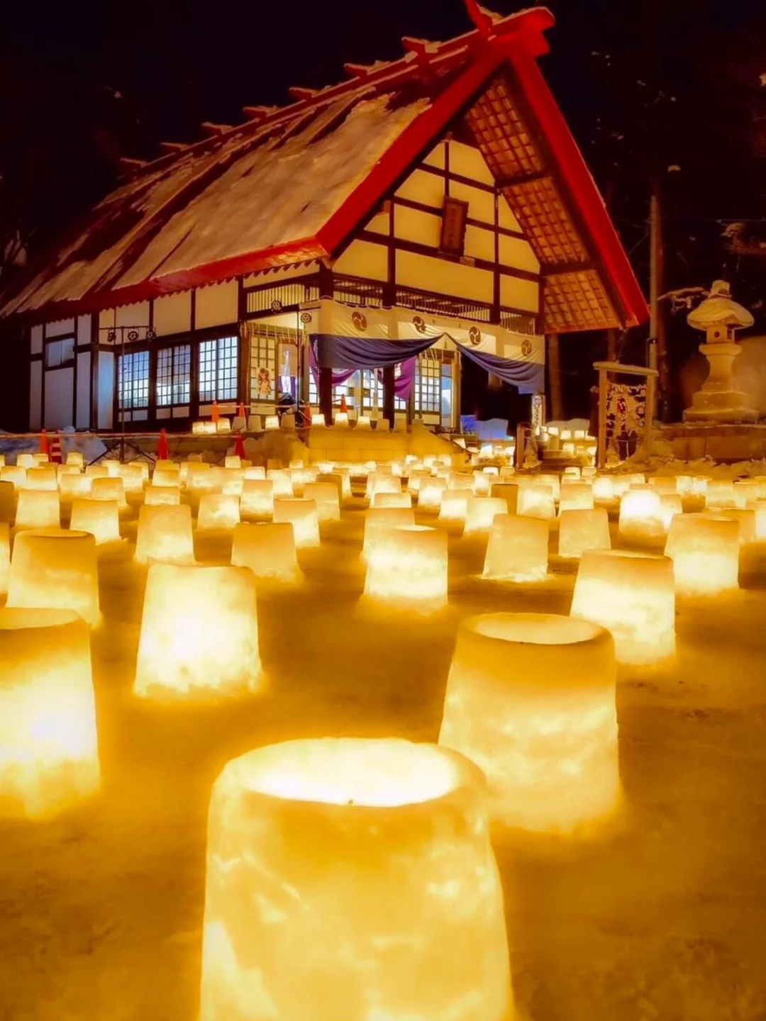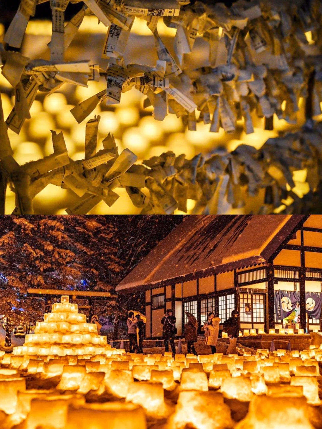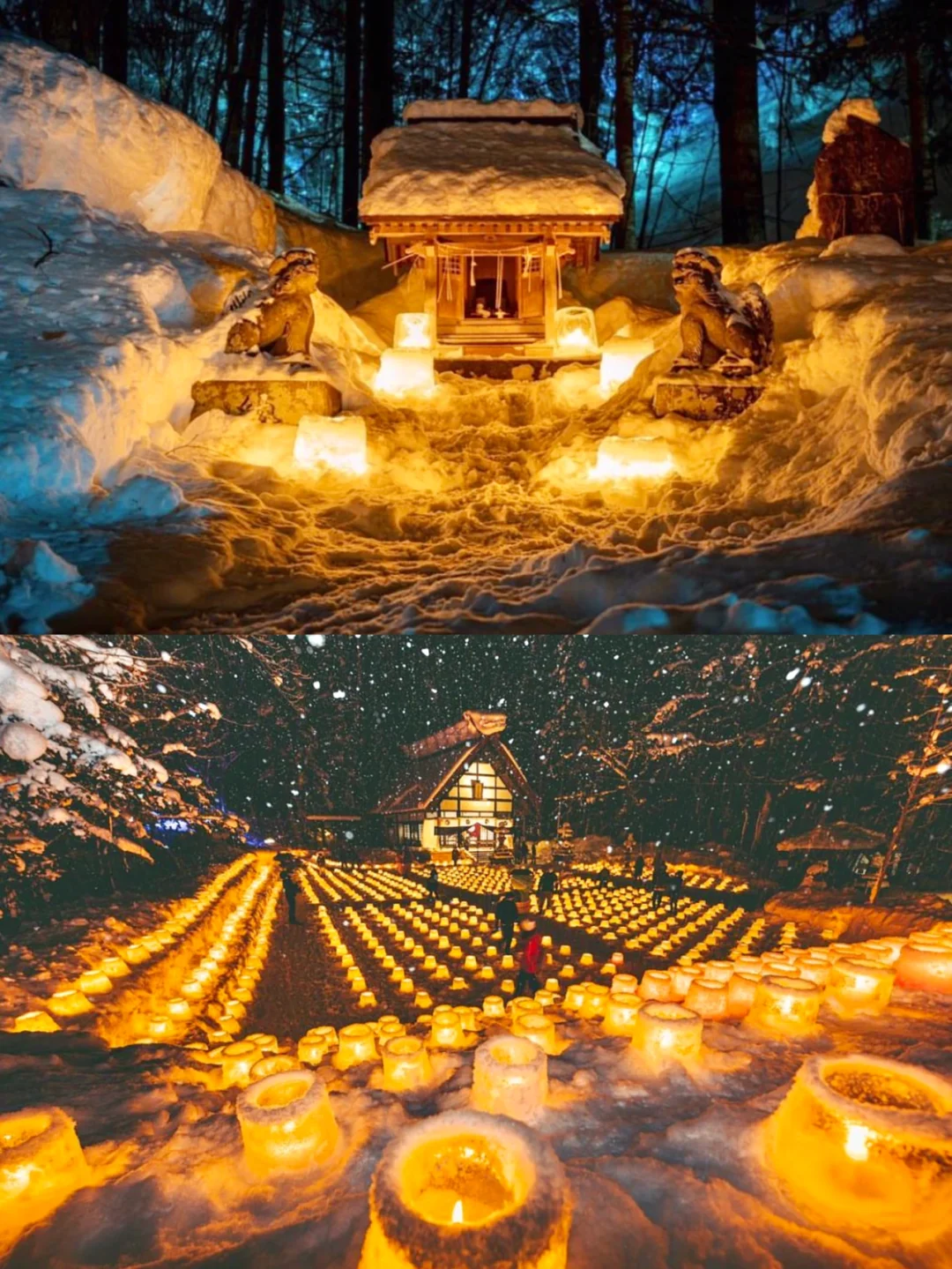 🔹温泉街的人们亲手制作的2000个雪蜡烛在神社境内营造出梦幻般的景致,届时温暖的灯光和厚厚的积雪会组成一个超级梦幻的氛围