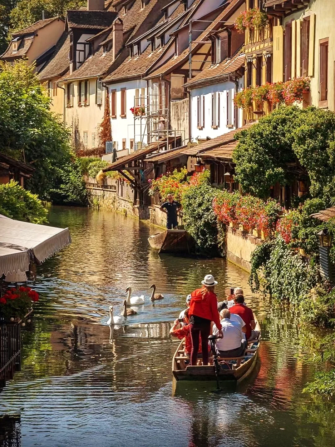 ▪️科尔马是南法乡村风情小镇,空气里弥漫着浓浓的浪漫,小镇上能看见16世纪的木筋屋、尖顶的教堂、干净的中世纪石板路、缓缓流淌的河水和载满船只的鲜花