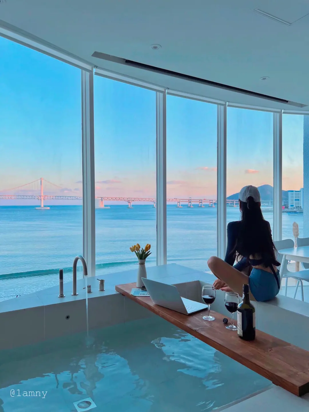 🌈民宿亮点:走进民宿抬眼望去就是美丽的广安大桥,在房间内就可以呼吸到海边的空气。 宽敞的落地窗户将海边的风景一览无余,可以躺在按摩浴缸中一边泡澡一边欣赏海景