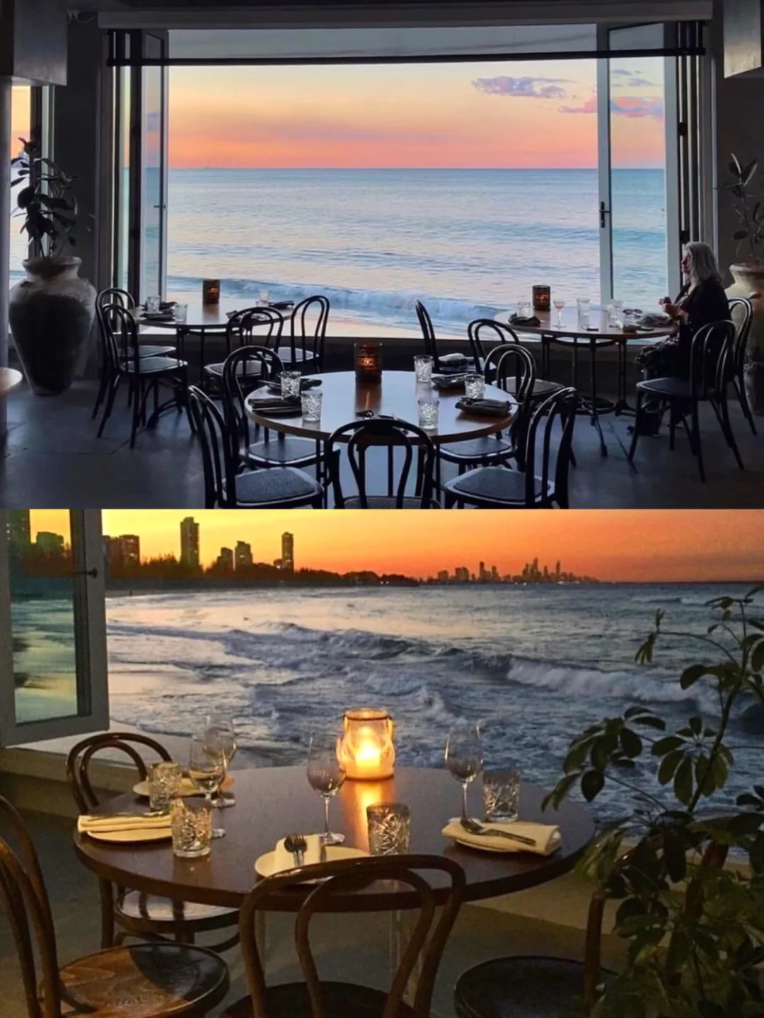澳洲这家餐厅光是景色就已经能让hoho坐着发呆一整天!眼前的海景就像一幅画被框在窗前,远处还能看见大家自由自在的冲浪~