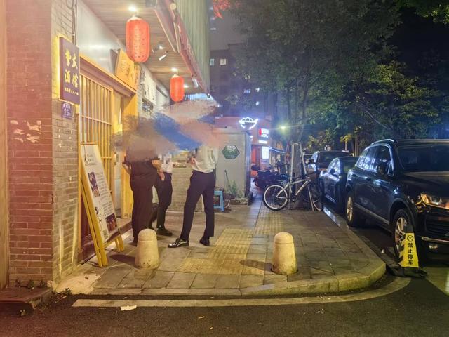 7日晚上10点多,南街街道城管中队多名队员来到这家酒馆执法,首先对商家占道经营情况进行现场勘测,面积大约为5㎡。同时,根据《市容法》,城管暂扣了商家的两张桌子和6张椅子,后续将根据现场勘验情况对商家作出行政处罚。商家也表示,在未经审批的情况下,不会再占道经营。记者离开时,人行道已腾空,四周恢复安静,相信附近居民今后能安然入睡。