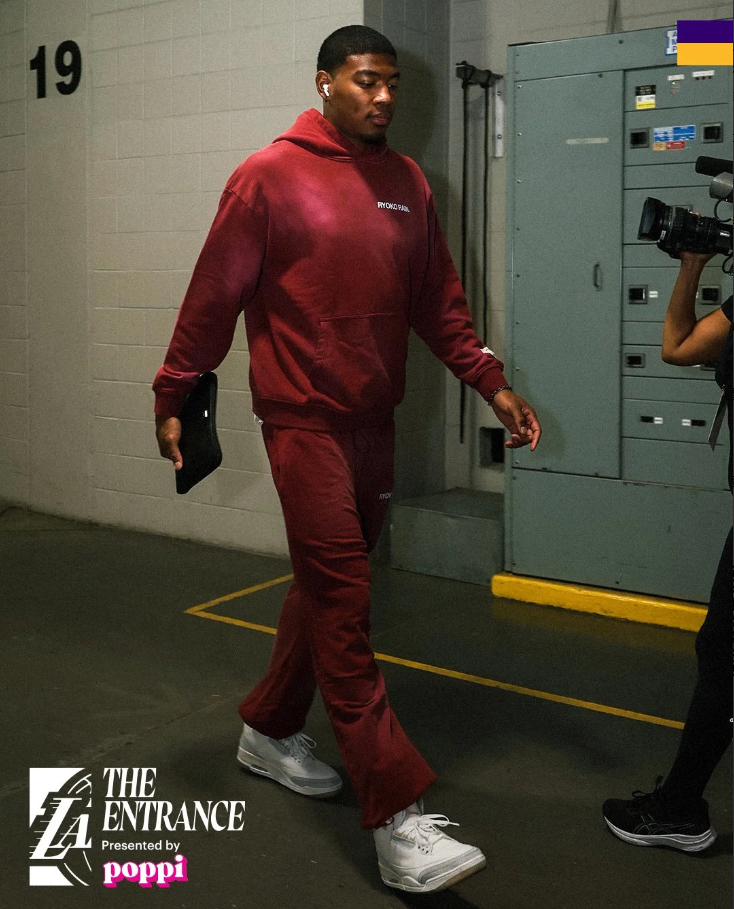 NBA常规赛,湖人对阵老鹰的比赛即将开始。 赛前,湖人社媒分享球员们步入球馆的瞬