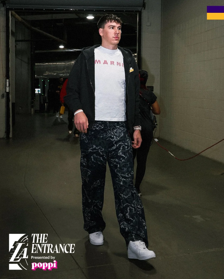 NBA常规赛,湖人对阵老鹰的比赛即将开始。 赛前,湖人社媒分享球员们步入球馆的瞬间,卢卡-东契奇等球员出镜。 本赛季,东契奇场均得到40分11篮板9.2助攻2抢断0.6盖帽。