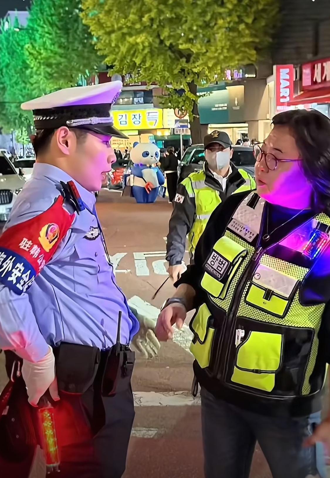 韩国街头惊现我们的公安制服! 在首尔最繁华的街头十字路口,一位身着我们制服的男子在挥舞着警棒指挥交通,他身上的这套制服太抢眼了,不仅版式与国内的高度雷同,而且还有“驻韩公安”的红袖章,有肩灯,更离谱的是,胸章竟然写着“辽宁”,很符合地理情况,毕竟历史上半岛受辽宁影响比较大。 男子此举立即引来众人围观,中国游客狂笑拍照,一觉醒来都有“驻韩公安”了,韩国巡逻人员也上前询问情况,据了解,此人是韩国人,因长期看中国影视剧,受中国文化影响,就想着在万圣节搞这么一出。 还别说,真像那么回事,最搞笑的是,路上的车辆还真听指挥,丝毫没发现有什么不妥。