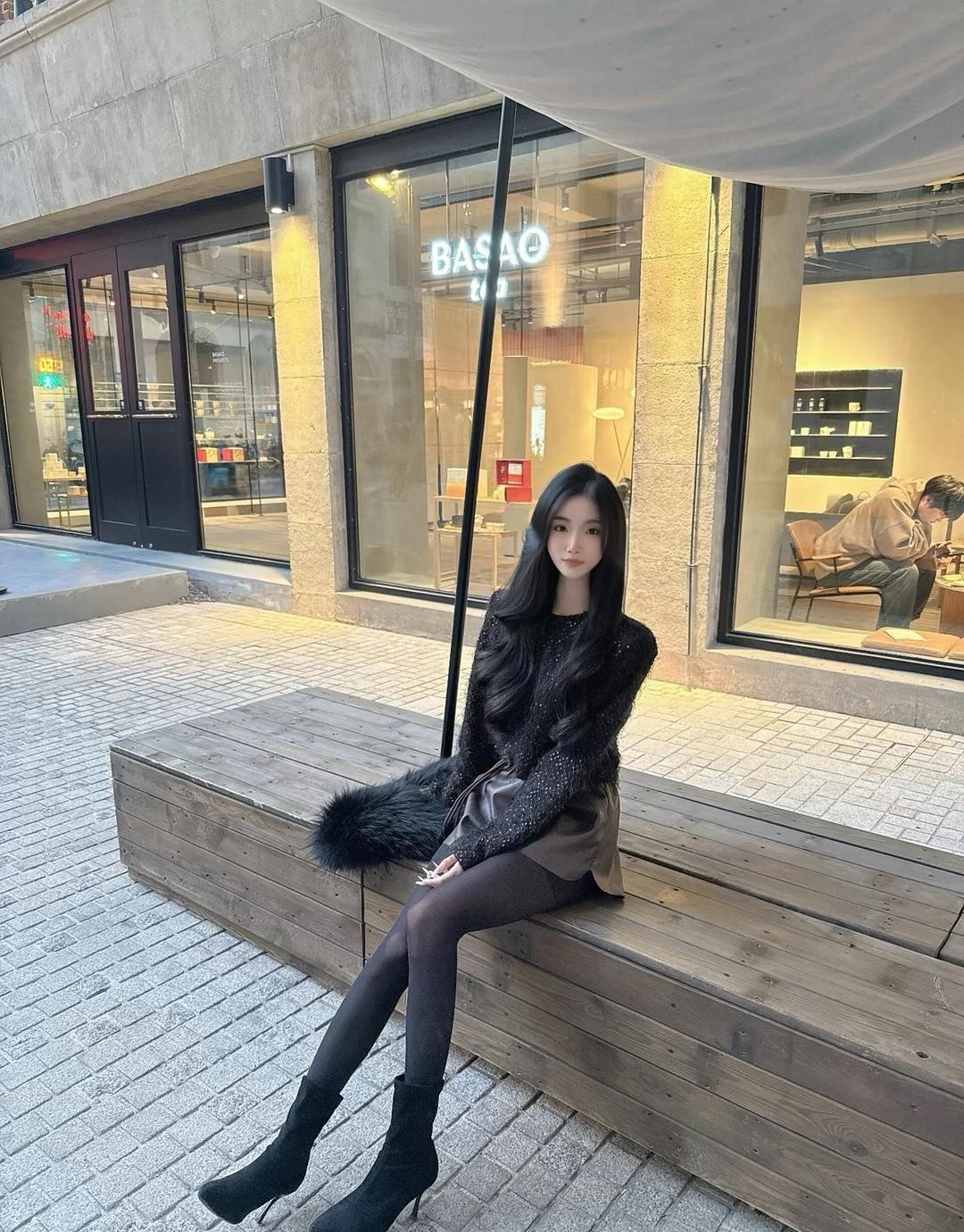 都市雅致风,黑色皮草外套搭配高跟靴,尽显时尚魅力!
