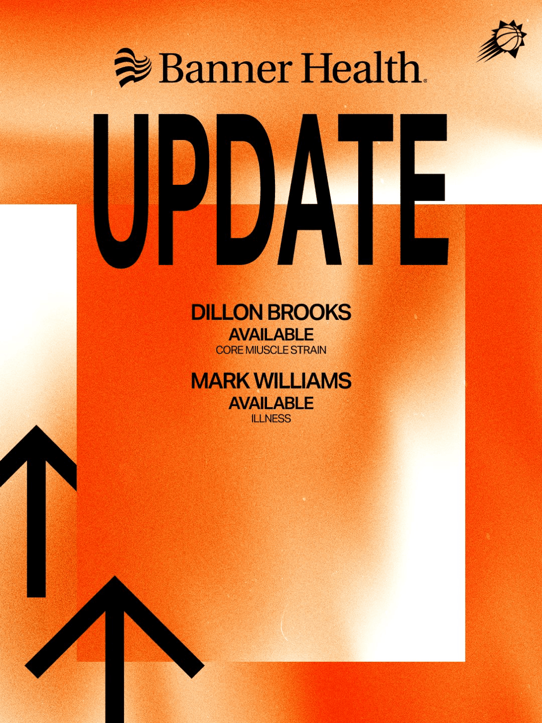 太阳更新伤病报告:狄龙-布鲁克斯和马克-威廉姆斯可以出战