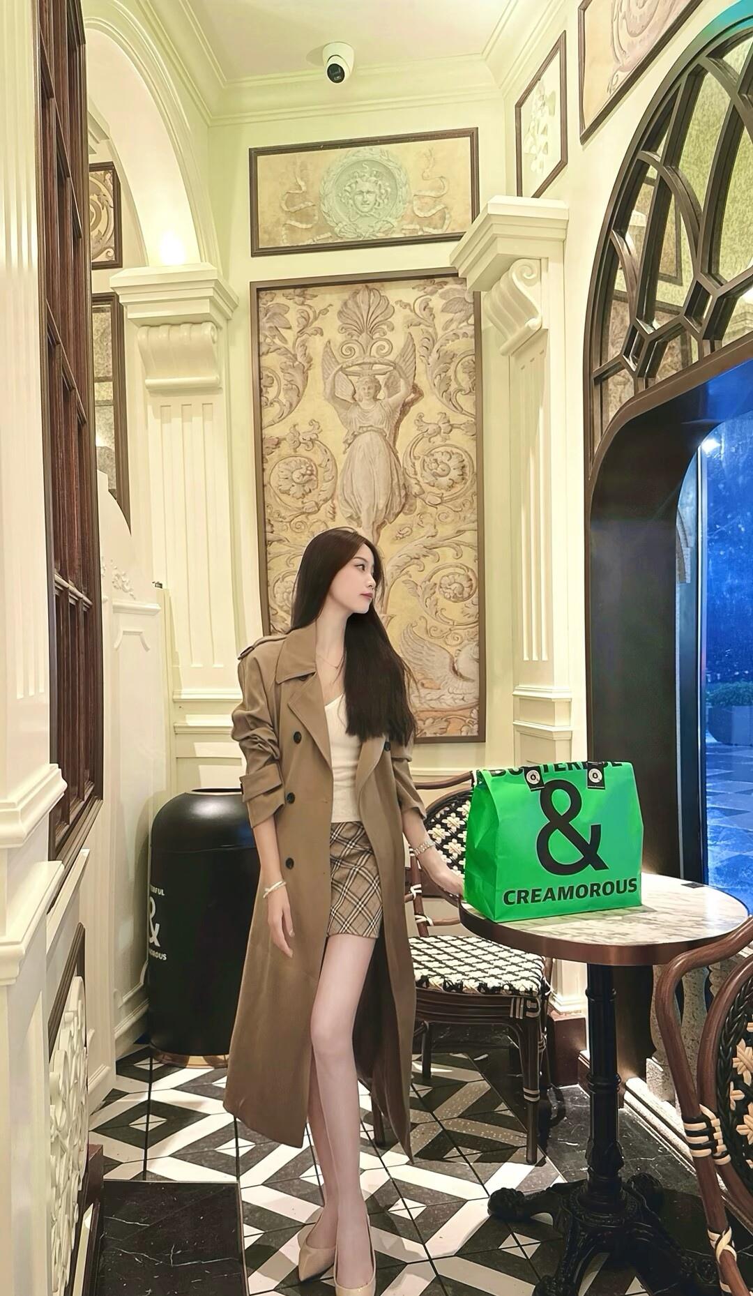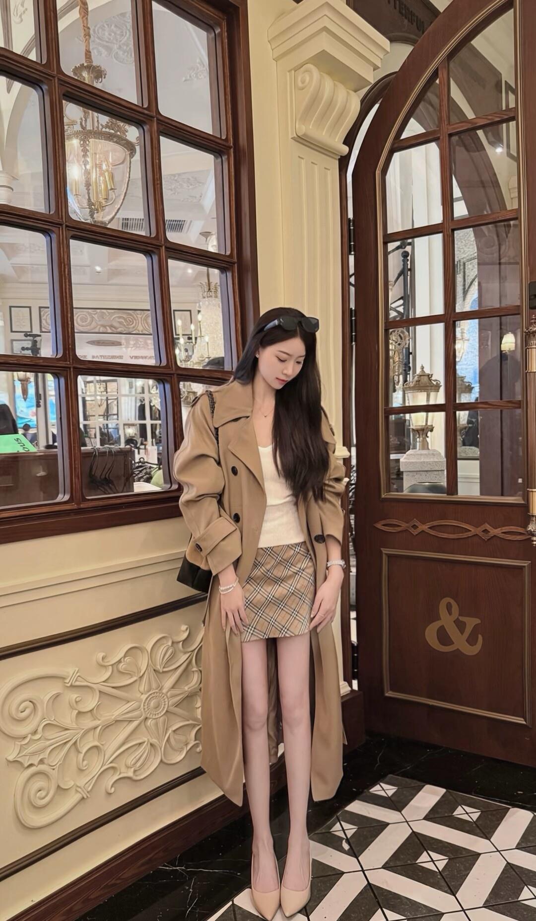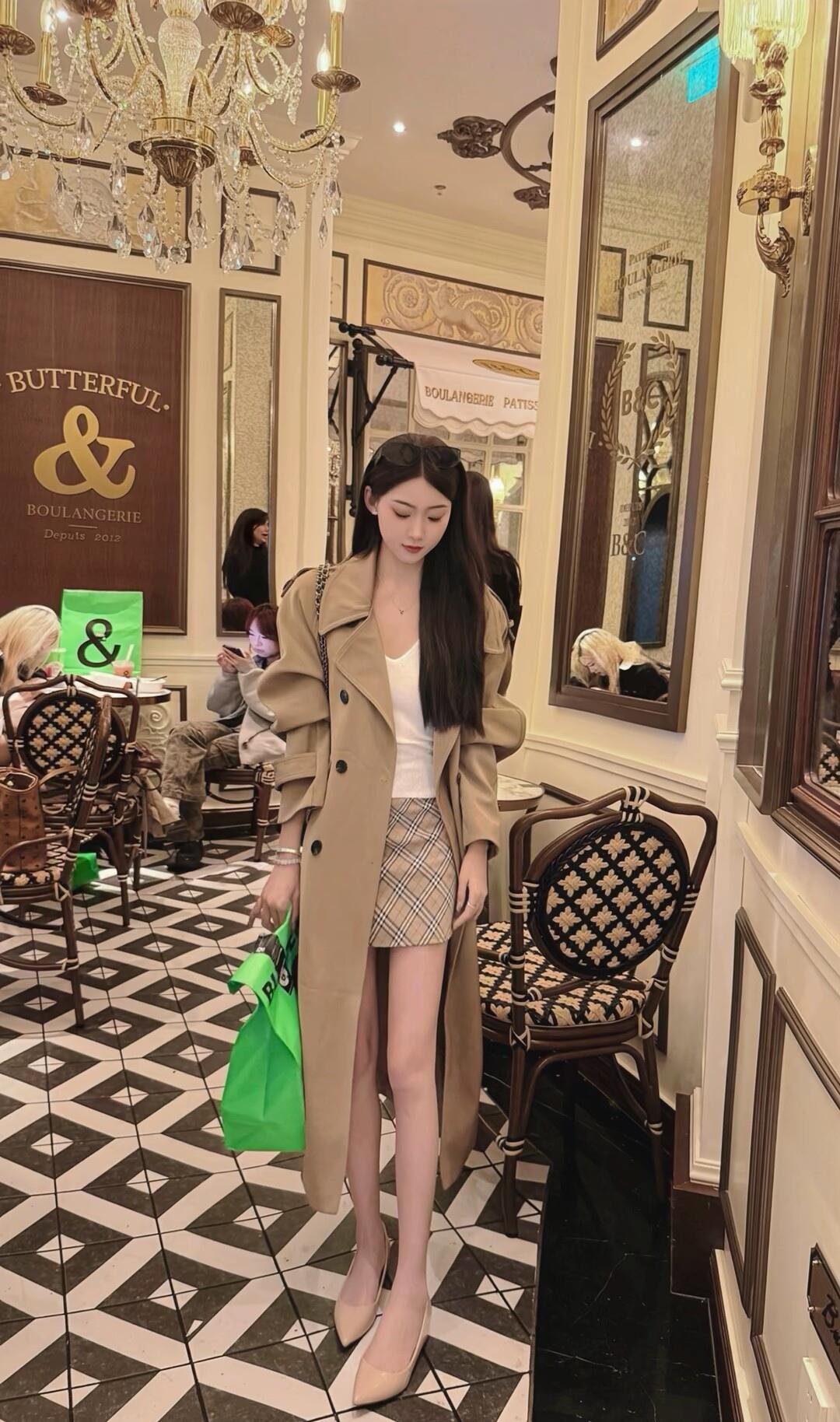 优雅穿搭指南:复古风外套+格子裙,搭配绿色手袋,尽显时尚品味!