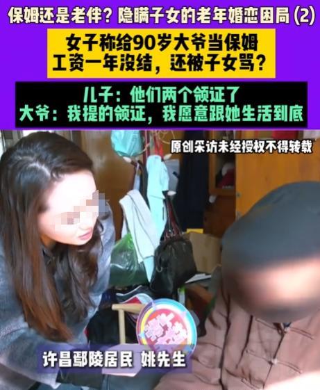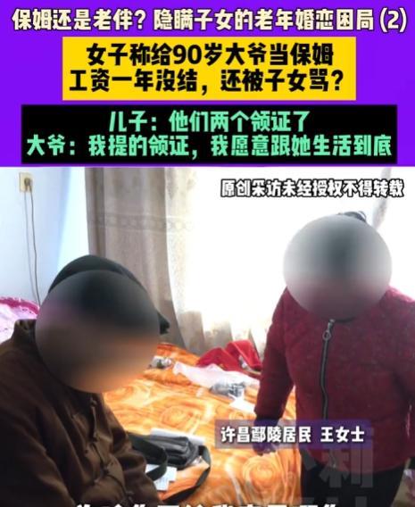 河南许昌,90岁的大爷生活无法自理,儿女给他请了住家保姆,每月工资1600元,起初一切正常,可一年后,儿女发现父亲瞒着他们和保姆偷偷领了结婚证。儿女觉得保姆心思不纯,想占父亲便宜,气得不再给她结算工资,保姆却满腹委屈,称是老头非要领证,自己啥也不图。大爷称保姆是好人,想和她过到底。 据小莉帮忙报道,姚大爷早年离异,子女都在外地工作,平时很少回家,他身体不好,生活不能自理,子女们商量后,给他请了个住家保姆王女士,每月工资1600元。 王女士刚来时挺尽心,姚大爷尿湿裤子,她从不嫌脏,马上给换洗,姚大爷子女不常来,家里就靠王女士照顾。 一年多后,王女士突然发现工资不发了,她问姚大爷,姚大爷也说不清楚。 王女士本想直接走人,但想到姚家之前换了六个保姆,都干不长,她怕自己一走,没人照顾姚大爷。 于是,她决定等有人接手了再走。 可没过几天,姚大爷的儿女突然找上门,说王女士是想占姚大爷便宜,还拿出结婚证,说他们现在是夫妻。 王女士承认领了证,说是姚大爷非要拉着她去民政局,自己根本没图什么,姚大爷也当场承认,说领证是两人都同意的,政策允许,自己就是想和王女士过到底。 王女士觉得这事弄得自己特别丢脸,她担心女儿知道后不管她,怕姚大爷子女闹得更凶,姚大爷的儿子虽然嘴上说支持父亲结婚自由,但抱怨父亲领证后,说以后要和他断绝关系,女儿更直接,指着王女士说她是骗子,就是想骗父亲的退休金。 王女士找姚大爷儿女理论,可他们根本不接电话,无奈之下,她只好向记者求助。 记者联系上姚大爷的儿女,儿子说,父亲领证前根本没和他们商量,他们担心王女士动机不纯,才停了工资。女儿说,父亲年纪大了,容易被人哄骗,王女士就是看中父亲有退休金,才哄着他领证。 王女士听了特别难过,她说自己照顾姚大爷一年多,从没想过要占什么便宜。她解释,自己之前离婚后一直单身,姚大爷对她好,她也想有个伴。 可姚大爷的子女根本不信,坚持要她离开。王女士说,自己可以走,但姚大爷没人照顾怎么办? 她提出,如果姚大爷子女愿意接手照顾,她马上就走,工资也不要了,可姚大爷的子女说,他们工作忙,根本没时间天天照顾父亲。 社区的人也劝姚大爷,既然领了证,就和王女士好好过日子,也联系子女让他们常回家看下。 可姚大爷的子女还是不同意,坚持认为王女士是骗子。 王女士没办法,只好说,如果子女还是不信,她可以签协议,放弃姚大爷的财产继承权。可姚大爷的子女还是不同意,说领证本身就不合法。 王女士和姚大爷是自愿领证,婚姻合法有效,子女无权干涉。 从法律角度看,姚大爷和王女士的婚姻是否合法,关键看是否自愿,以及是否存在禁止结婚的情形。 根据《民法典》第一千零四十六条规定,结婚应当男女双方完全自愿,禁止任何一方对另一方加以强迫,禁止任何组织或者个人加以干涉。 姚大爷和王女士领证时,双方都表示自愿,且没有法律禁止结婚的情形,因此婚姻合法有效,子女无权干涉。 那么,姚大爷去世后,王女士作为配偶,有没有继承权? 根据《民法典》第一千零六十二条规定,夫妻在婚姻关系存续期间所得的工资、奖金、劳务报酬等财产,为夫妻共同财产。 如果姚大爷去世,未立遗嘱,王女士作为配偶,与子女同为第一顺序继承人,有权继承姚大爷的遗产。 如果姚大爷子女认为王女士有侵占财产的行为,需要提供证据,否则不能剥夺她的继承权。 如果姚大爷子女不赡养,王女士能不能起诉? 根据《民法典》第一千零六十九条规定,子女应当尊重父母的婚姻权利,不得干涉父母离婚、再婚以及婚后的生活。子女对父母的赡养义务,不因父母的婚姻关系变化而消除。 如果姚大爷的子女不履行赡养义务,王女士作为配偶,可以要求子女支付赡养费,或者通过诉讼争取。 老年人也有追求幸福的权利,子女应该尊重父母的选择,而不是一味干涉。老年人再婚时,最好提前签订财产协议,或者订立遗嘱,避免日后产生纠纷。