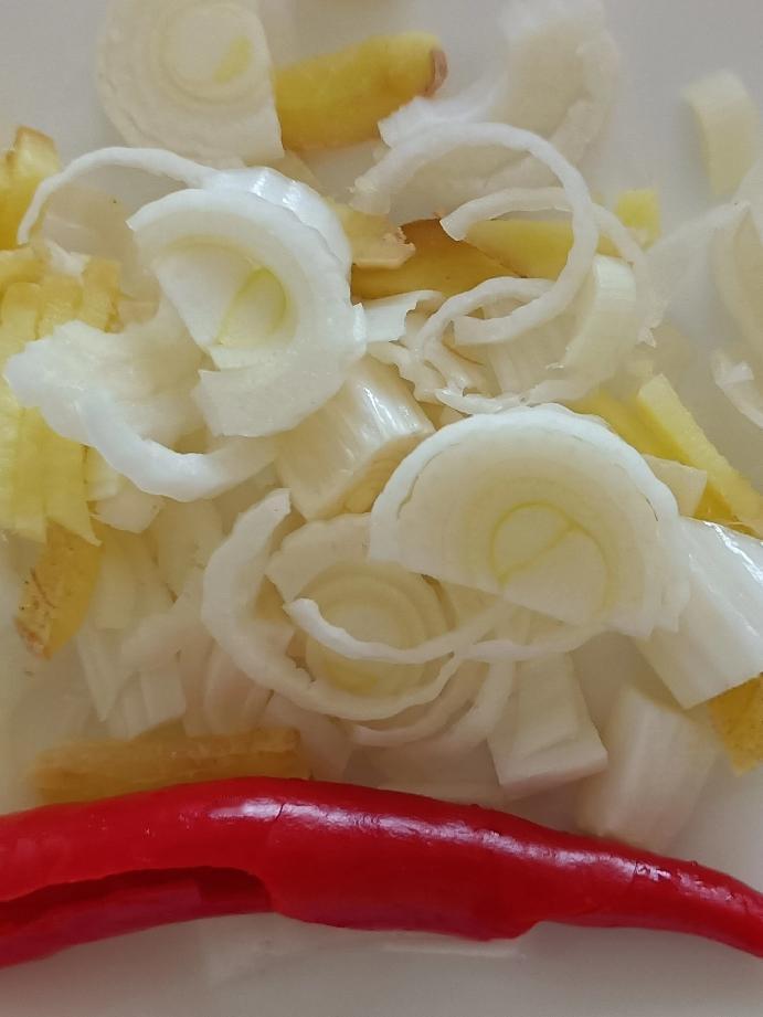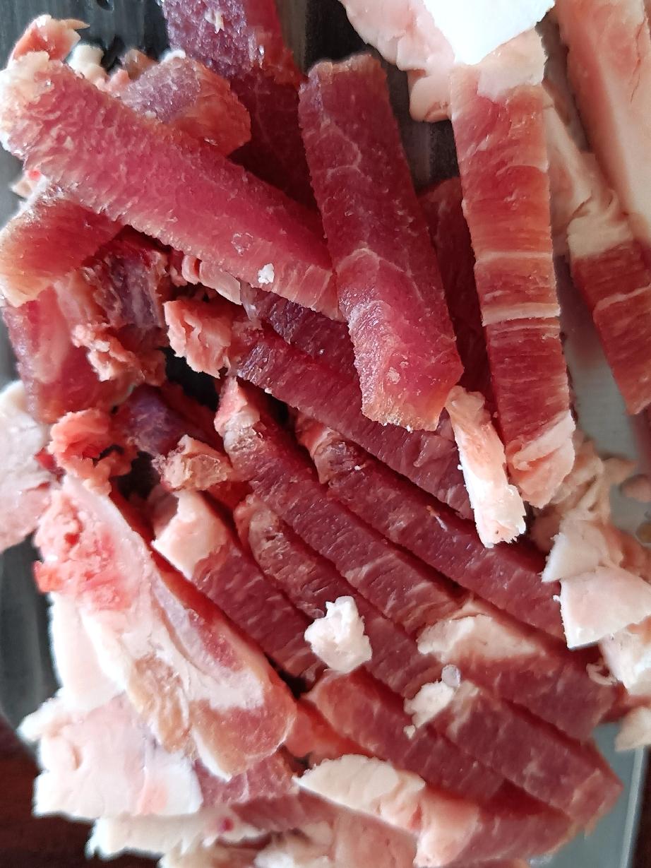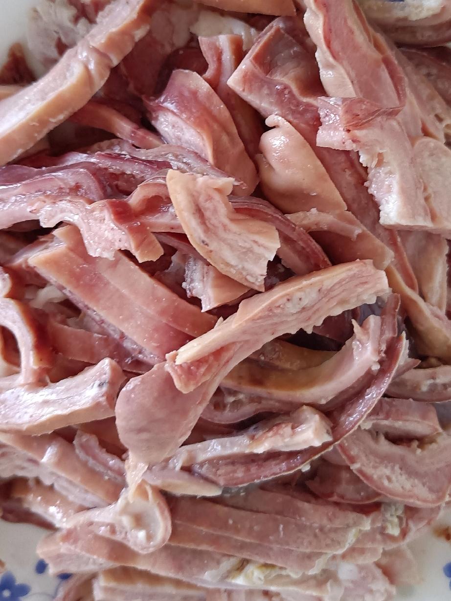 今天不忙,给大家分享一个我认为很好吃的菜,我做得挺拿手的,百分之八十的人都没吃过,包括我们当地人! 这个菜的配料是猪肚、土豆和芹菜。 我买的是生猪肚,买了两个,我都没问多少钱一斤,反正两个花了五十二。平时我去熟食店,买我老公最爱吃的猪肚,每个在五十元到六十元之间,买生的是真便宜! 昨晚煮好了,今天给我女儿家拿来一个,中午做个菜! 先把猪肚切成半厘米左右的丝,再切点猪肉,锅热放油,一点点,然后放入生肉,炒香,放入葱姜末小米辣酱油,还有小米辣,我要是在我家做,就会放很多小米辣,可女儿家的两个小宝宝吃不了辣,就放了一个小米辣,还去掉了中间的部分。然后放入肚丝翻炒,再放水,煮开后用勺子撇出浮沫,转小火,放入适当的盐,五分钟以后吧,放入土豆条,我切的有点粗,也可以切细点,土豆熟了,放入芹菜,三分钟以后放入味素,出锅,热乎乎的猪肚土豆芹菜就做好了,热乎乎的可好吃啦!汤也比较好喝! 不信您也试试!饭店一般都没有这道菜!