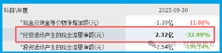 最引人注目的是经营活动产生的现金流量净额——竟然高达2.32亿元,是净利润的整整6倍!这就好比一个人声称收入锐减,银行卡流水却暴增,其中必有蹊跷。