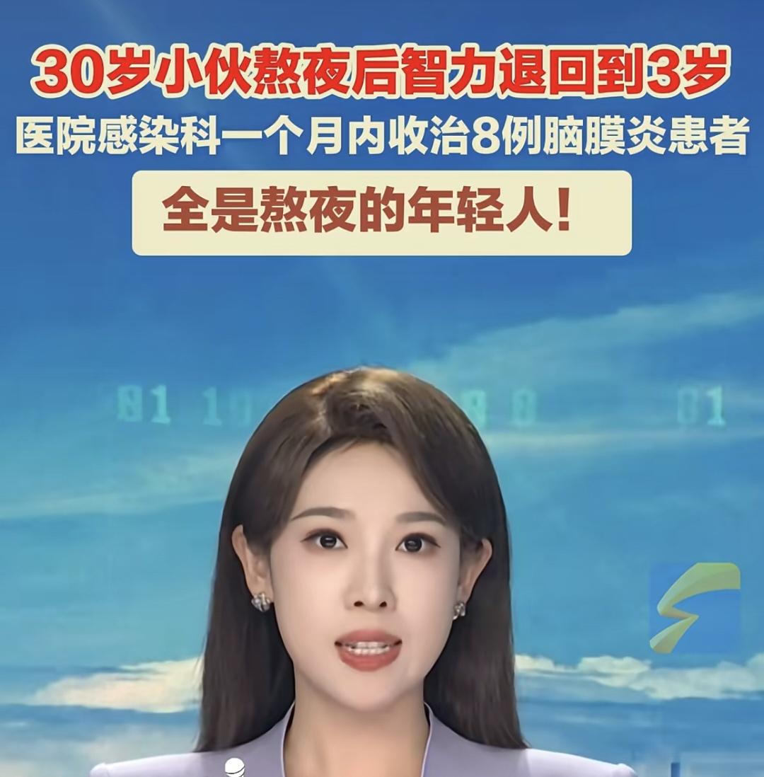 30岁小伙智力退回到3岁‼️ 竟然是因为长期熬夜打游戏所致!🎮 可悲又可怜呐[伤心] 医院一个月收治8例脑膜炎 都是熬夜的年轻人[恐惧][恐惧][恐惧] 赶紧提醒你身边喜欢熬夜游戏刷剧的人 这手机带来的损伤不容小觑 不可逆转[恐惧] 这么看来, 长时间盘手机肯定伤大脑 一定得管好家里的正长身体的孩子们 尽量少接触电子产品! 那究竟是熬夜的错 还是手机的错❓️ 我家孩子读书每天也很晚睡觉, 我也陪着他 每天睡眠时间只有6-7小时 我更少....他睡了我再睡,他没醒我先提前起来做早餐[恐惧] 唉,好难! 哪有不用熬夜的生活 10点前睡觉做不到啊[捂脸]