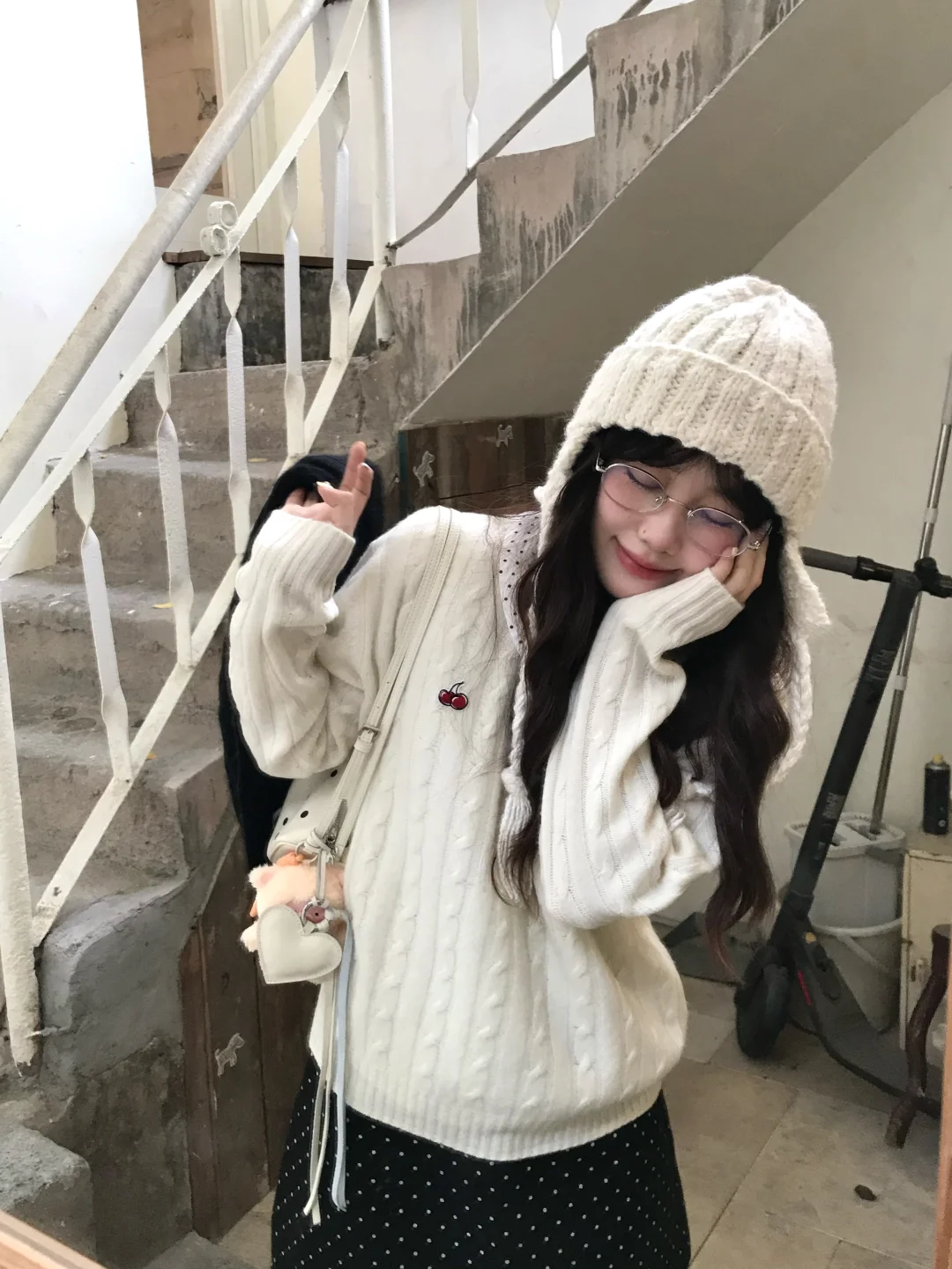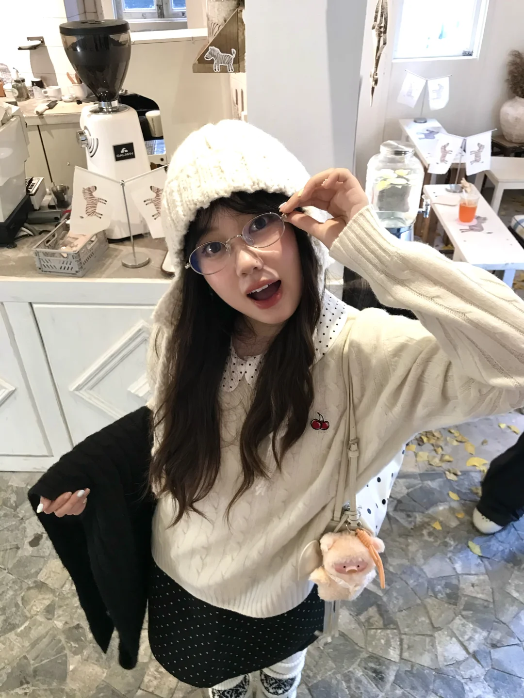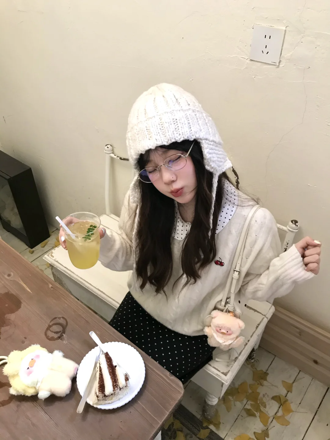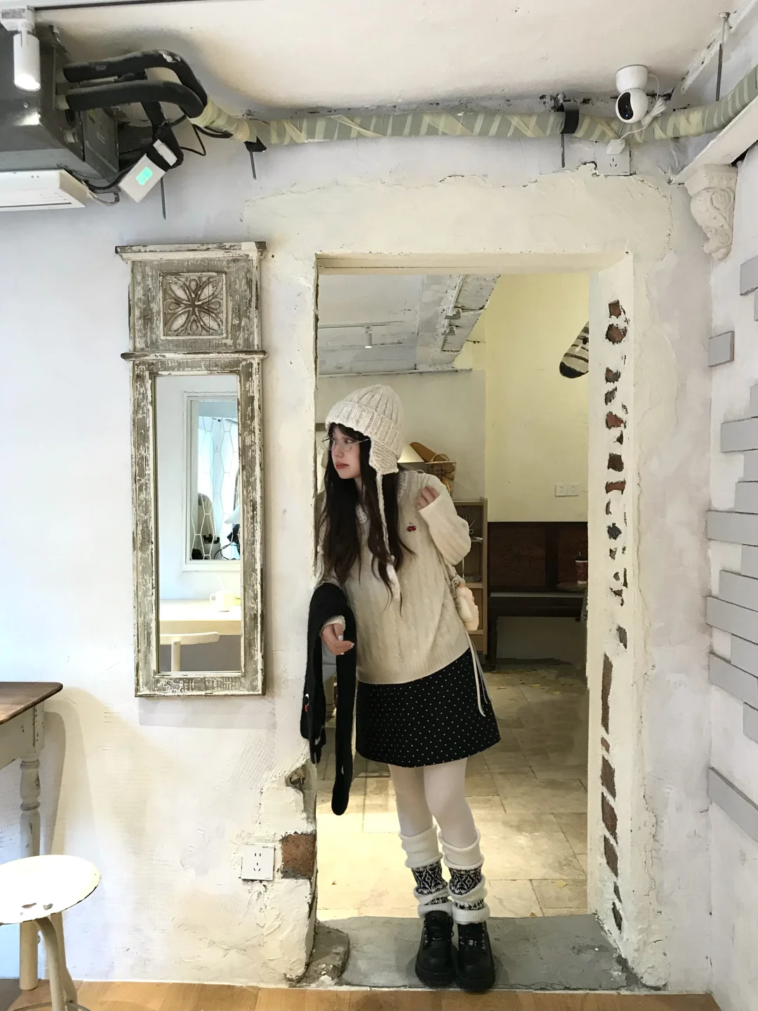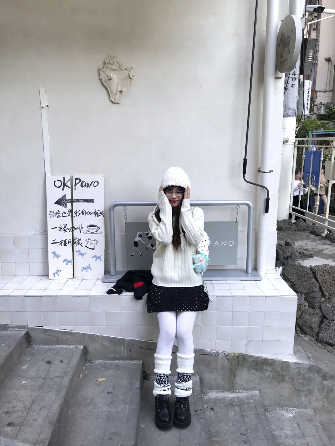 i人小幅度韩女感拍照姿势get! 白色毛衣搭配起来如此韩系 💭入冬继续美美波点元素ʚ˶˃ ᵕ ˂˶ɞ