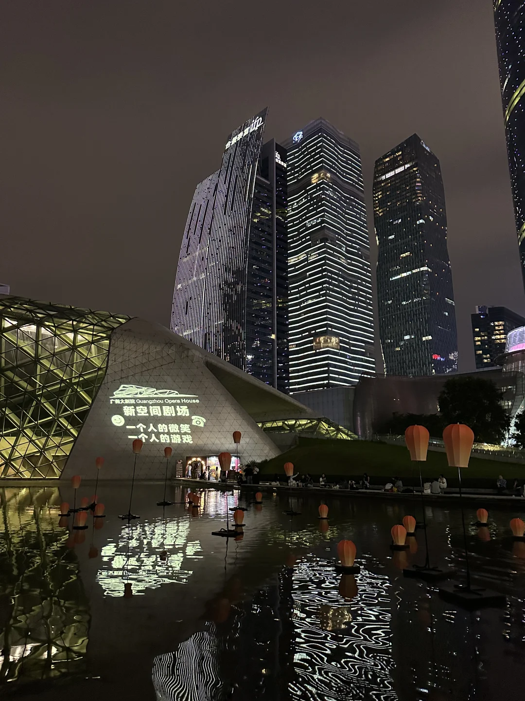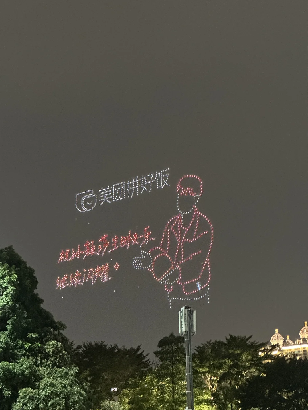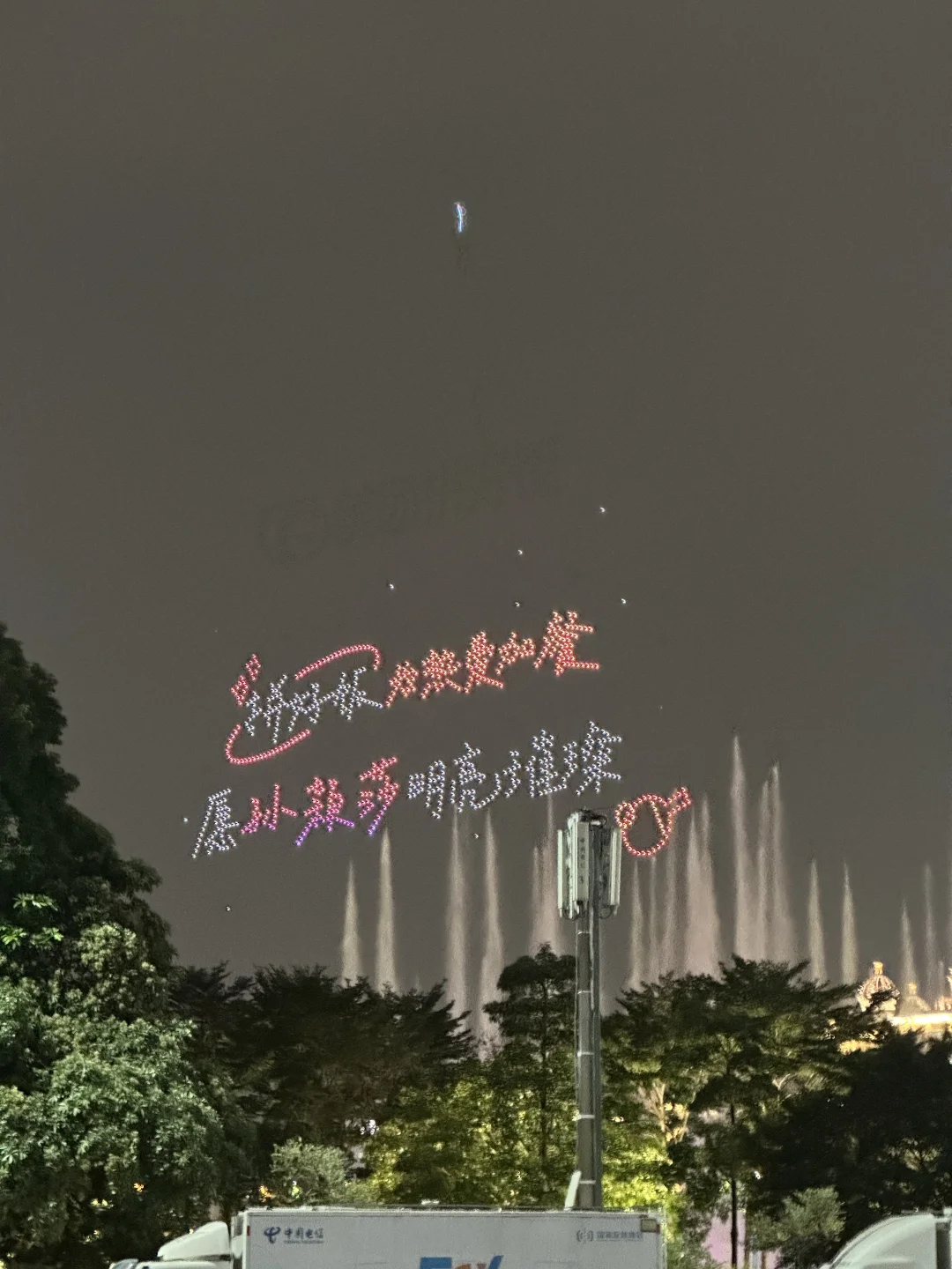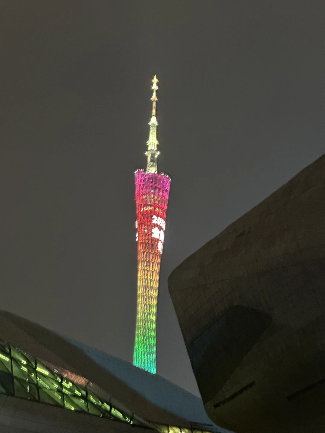 当广州塔换上了低饱和度色系 先上干货路线:地铁APM线大剧院站E口出,别绕地面!地下通道直通花城汇中区,避开晚高峰车流,5分钟就能摸到核心拍景区,还没到就听见球迷的小声欢呼,连赶路的疲惫都被期待感冲没了~ 必拍机位:海心沙看台中层(全景C位) 别傻挤下层!中层视野刚好,能同时装下无人机编队、广州塔、全运会主题灯带。最绝的是无人机拼成孙颖莎挥拍图案时,广州塔刚好亮着暖金全运灯光,背景是CBD的亮灯楼群,层次感直接拉满。拍的时候记得开手机连拍(划重点!),无人机图案切换太快,连拍能抓下“运动感+夜景感”同框的瞬间,我蹲了2场,终于拍到“挥拍剪影+广州塔尖”的绝景,直接设成电脑壁纸了~ 必拍机位:花城广场北塔旁草坪(低空细节位) 这地方很少人抢!草坪斜坡能稍微抬高视角,无人机低空飞行时,能拍到机身灯光和地面全运灯带的光斑重叠,像漫天星星落在CBD。晚上9点后人流变少,能独占这个角度,把镜头对准无人机编队的边缘,让广州塔作为背景虚化,突出“空中文字”的细节,红金配色的应援字样在蓝黑夜空里超显眼,不用加滤镜就有电影感。 • 避开周末晚上8点的旅行团高峰,工作日晚上或周日去,拍的时候不用躲人头。