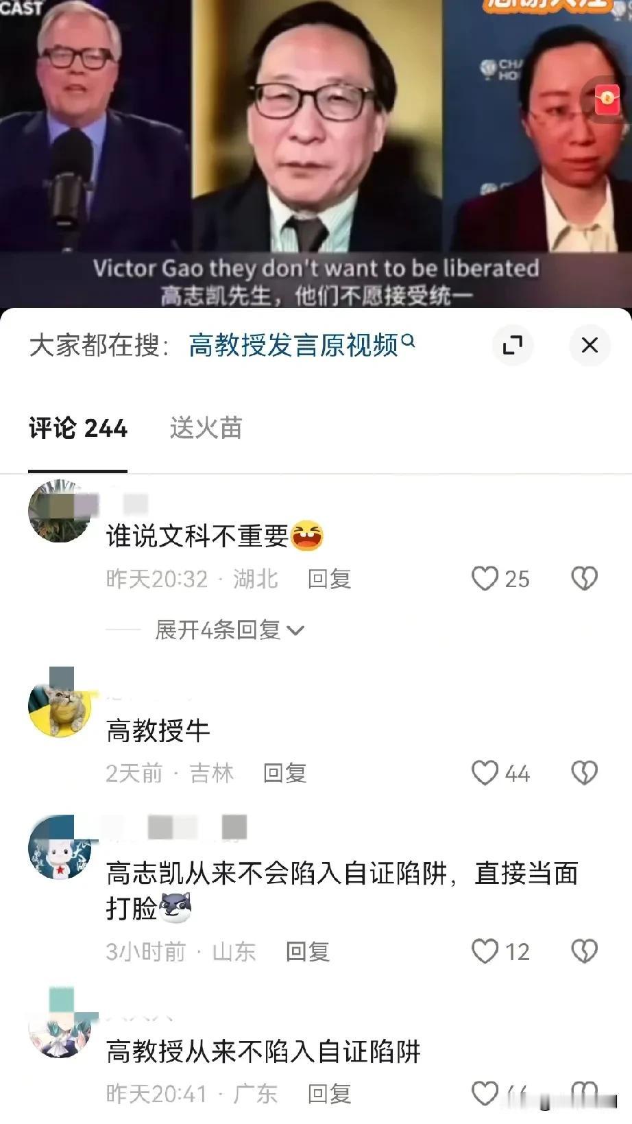 高志凯教授告诉你好的文科生也可以顶五个师,为什么现在的年轻人都很喜欢高志凯教授跟外国人辩论,都觉得高志凯教授怼老外非常厉害,高志凯教授掌握了辩论的最高境界,就是只攻不守,辩论跟打仗一样,进攻就是最好的防守,高志凯教授从来不去自证,也不落入西方的逻辑圈套,西方发出一个圈套如果你进去自证,你就被动了,因为西方那套民主自由,它们用得非常溜,你无法辩赢它们,高志凯教授的方式就非常好,你进攻我左边,我就进攻你的右边,让你自己陷入自证,你一自证,就说明我是正确的,所以你只能换另外一个话题,思路完全打断,你的气势就被高志凯教授给压制了!
