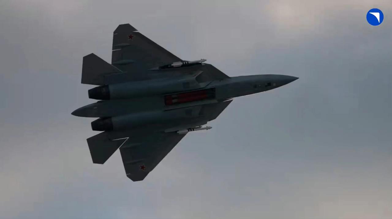 俄罗斯苏-57隐身战斗机在不断改进,日前苏-57第二阶段原型机“蓝色509”(T-50-9)的飞行宣传片发布。与以往不同,这次苏-57在机动飞行中打开了机腹弹舱和翼根处茧包式格斗弹舱,并且露出了挂载的导弹。 机腹弹舱位于苏-57两个进气道中间的机腹位置,共两个,前后串联布置。这架苏-57打开的是机腹前弹舱,露出的导弹是2枚Kh-58UShKE反辐射导弹;茧包式侧弹舱露出的是2枚R-74M2红外制导格斗弹。 ​​​